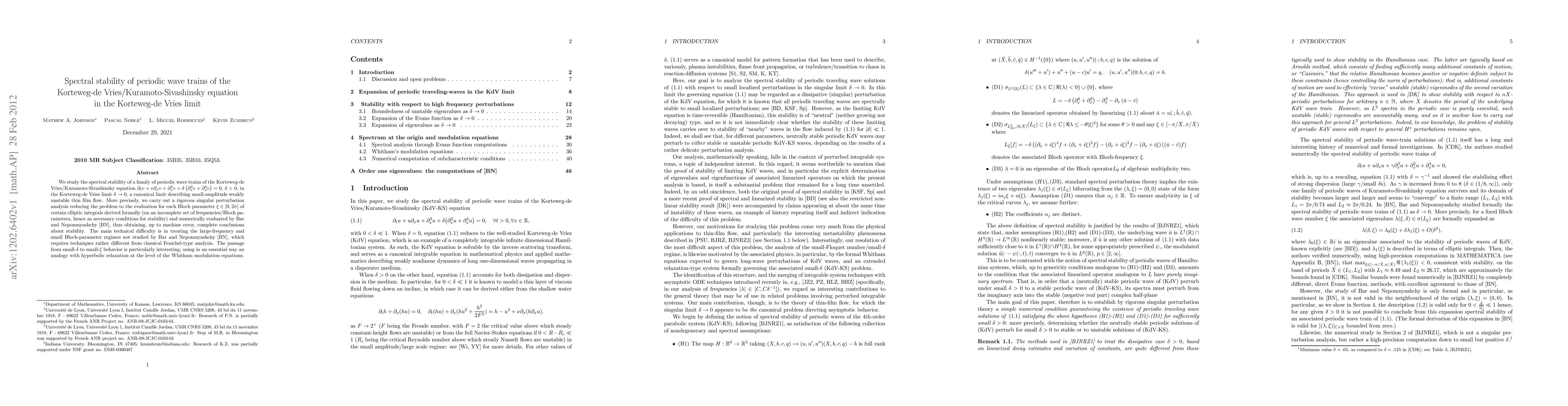 This paper investigates the spectral stability of periodic wave trains in the Korteweg-de Vries/Kuramoto-Sivashinsky equation under the Korteweg-de Vries limit, employing rigorous singular perturbation analysis. It resolves stability through elliptic integrals and addresses previously unstudied regimes, utilizing techniques beyond classical Fenichel analysis.