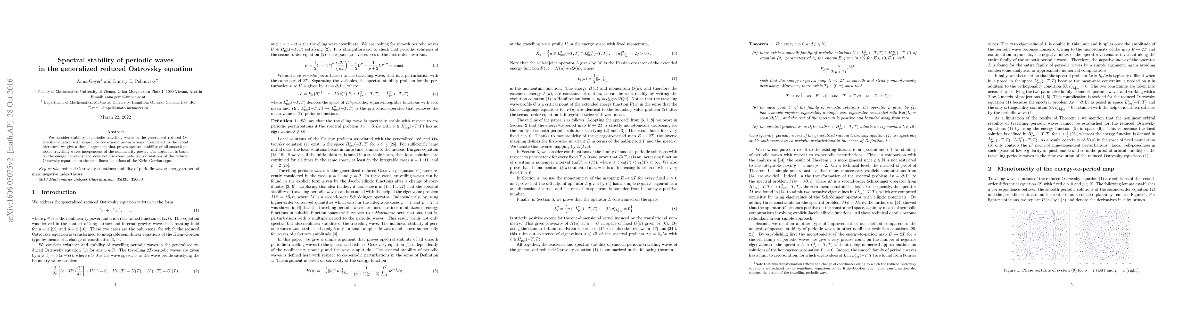 The paper introduces a novel, coordinate-transformation-free method for proving spectral stability of periodic waves in the generalized reduced Ostrovsky equation.