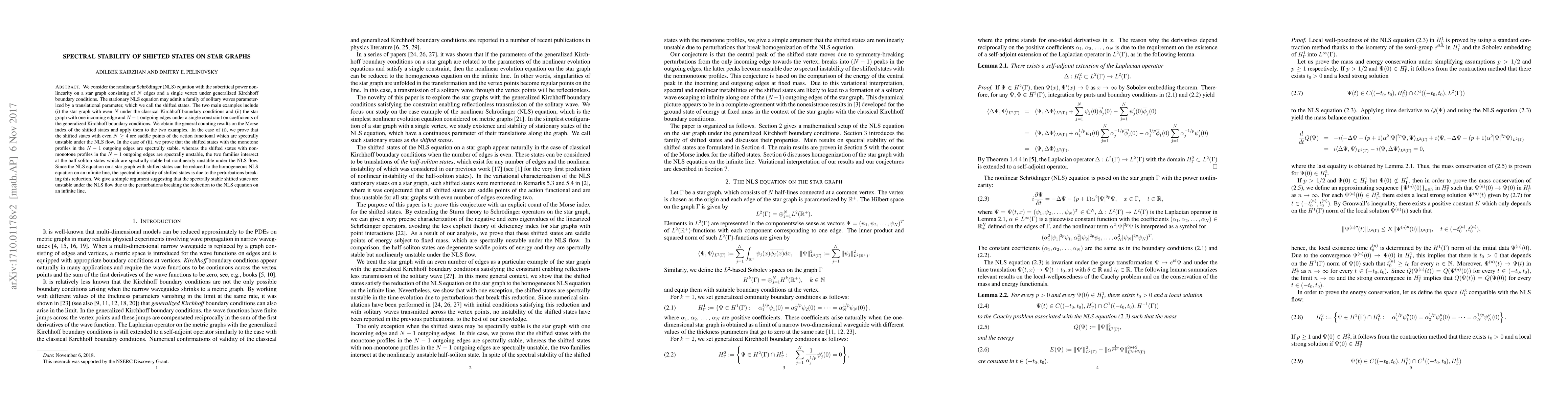 This paper examines the spectral stability of shifted states in nonlinear Schrödinger equations on star graphs, finding that shifted states with even N ≥ 4 are unstable, while those with monotone profiles in N-1 outgoing edges under specific conditions are stable. Instability arises from perturbations disrupting the reduction to a homogeneous NLS equation on a line.