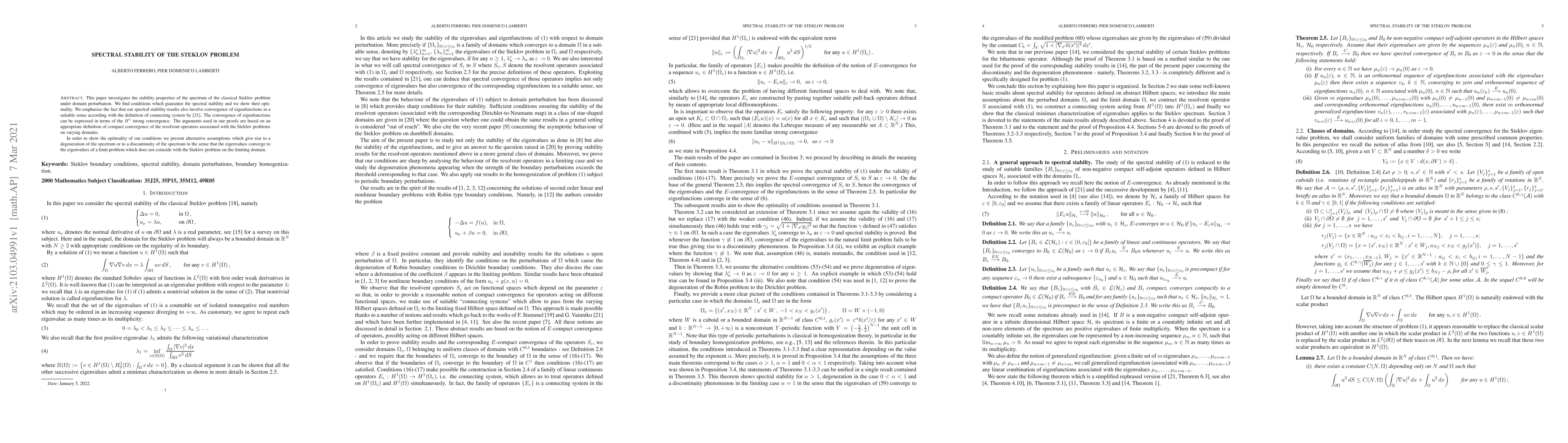 This paper examines the spectral stability of the Steklov problem under domain perturbations, establishing conditions for stability and demonstrating their optimality. It also proves the convergence of eigenfunctions in $H^1$ norm, using a definition of compact convergence of resolvent operators.