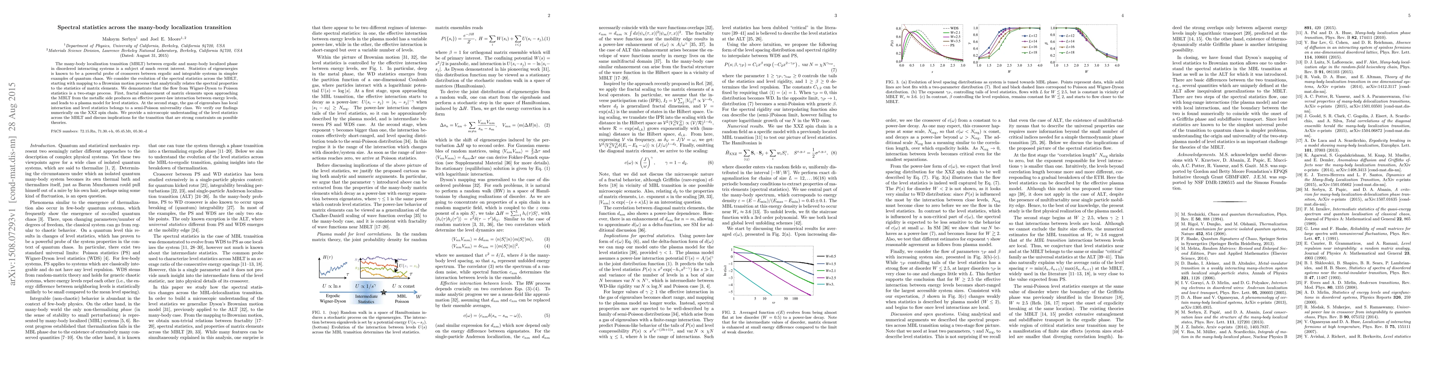 This paper investigates the spectral statistics across the many-body localization transition, demonstrating a two-stage evolution from Wigner-Dyson to Poisson statistics. It provides a microscopic understanding of this transition and verifies its findings numerically on the XXZ spin chain.