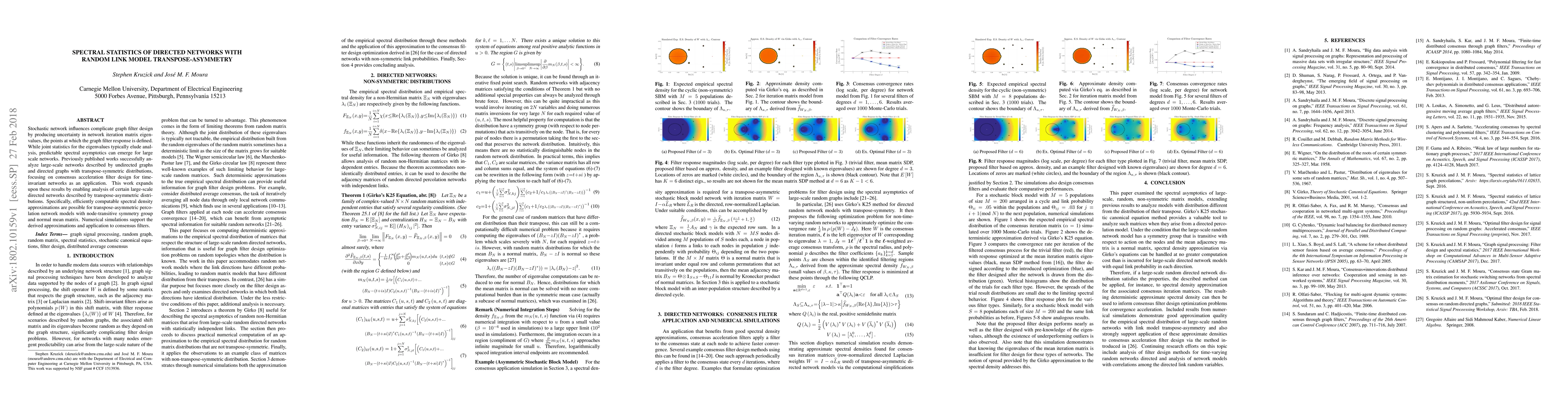Researchers developed efficient spectral density approximations for large-scale directed networks with transpose-asymmetric distributions, enabling analysis of certain percolation network models. This expands upon previous works on consensus filters in undirected and symmetrically distributed graphs.