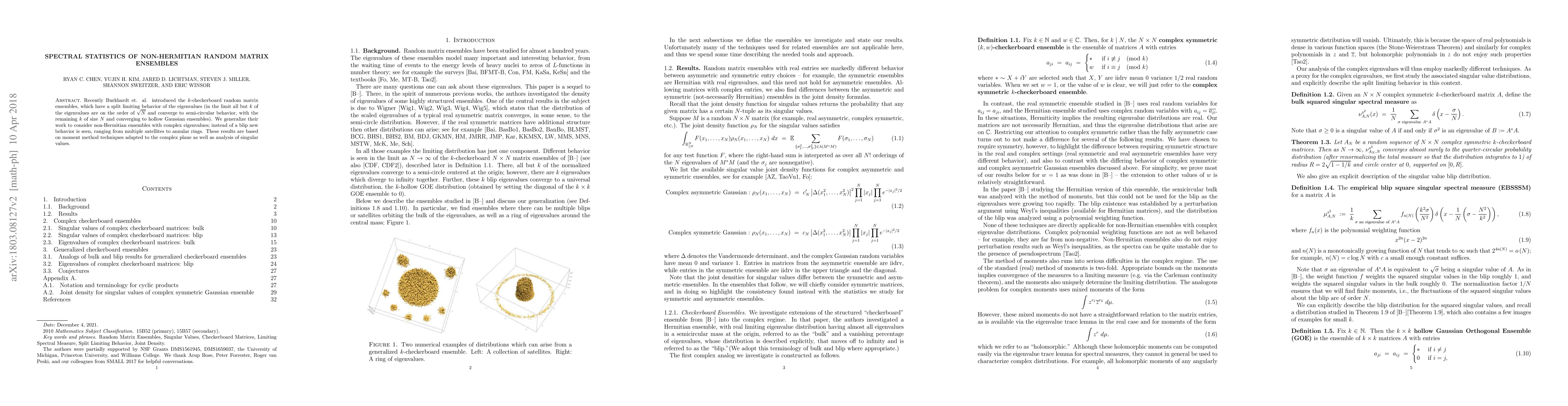 This paper generalizes the study of $k$-checkerboard random matrix ensembles to non-Hermitian random matrices, revealing complex spectral statistics including multiple satellites and annular rings instead of simple blips. The findings are derived using moment method techniques and singular value analysis, with a focus on the singular value joint density formula for the Complex Symmetric Gaussian Ensemble.