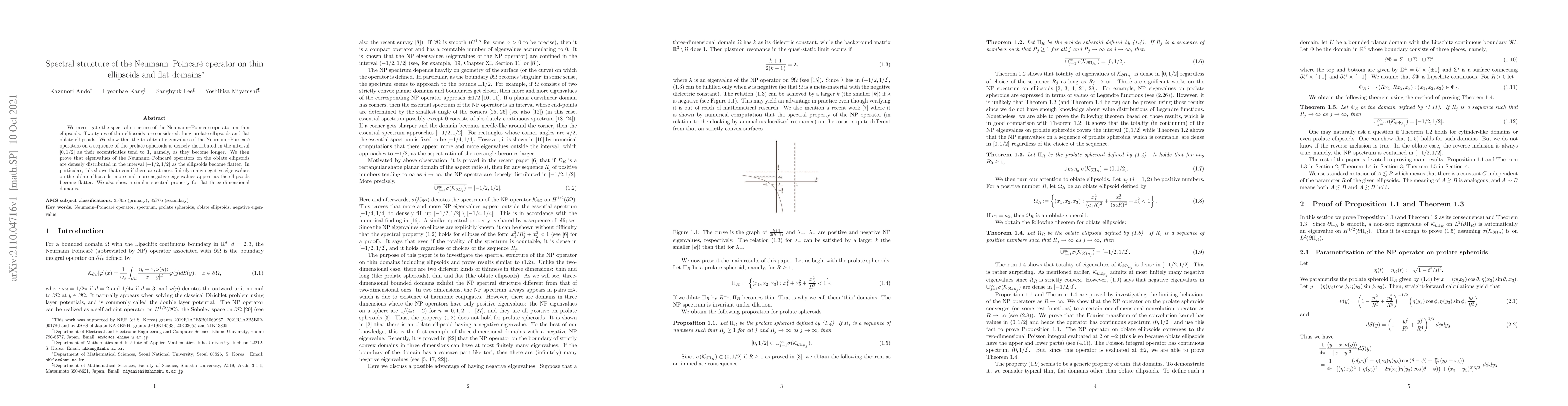 This paper explores the spectral structure of the Neumann-Poincaré operator on thin ellipsoids, demonstrating that eigenvalues densely populate specific intervals as the ellipsoids elongate or flatten. It reveals the emergence of more negative eigenvalues in oblate ellipsoids as they become flatter.