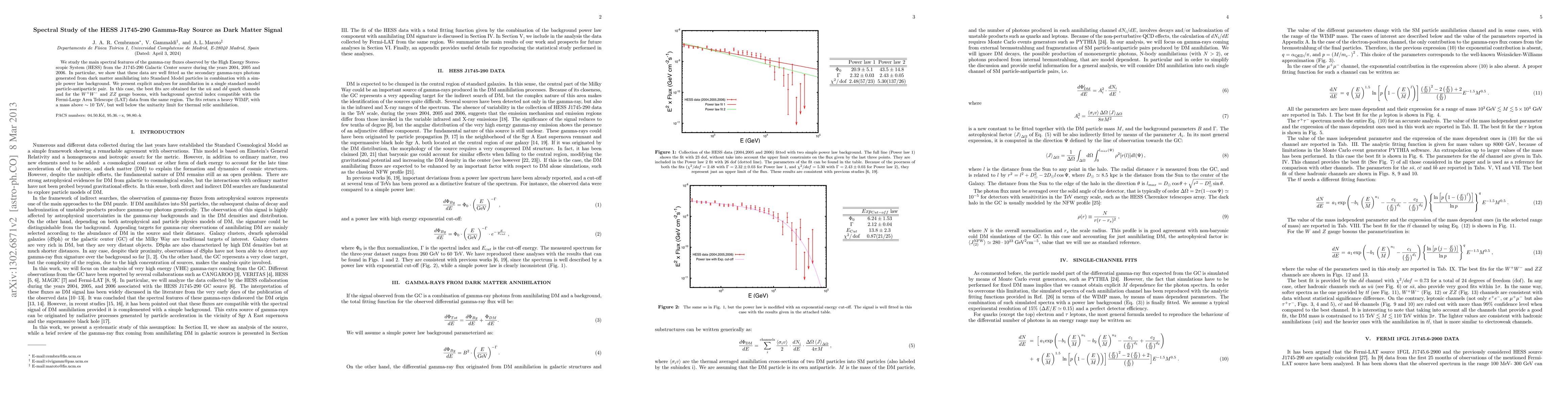 We study the main spectral features of the gamma-ray fluxes observed by the High Energy Stereoscopic System (HESS) from the J1745-290 Galactic Center source during the years 2004, 2005 and 2006. In particular, we show that these data are well fitted as the secondary gamma-rays photons generated from dark matter annihilating into Standard Model particles in combination with a simple power law background. We present explicit analyses for annihilation in a single standard model particle-antiparticle pair. In this case, the best fits are obtained for the u and d quark-antiquark channels and for the WW and ZZ gauge bosons, with background spectral index compatible with the Fermi-Large Area Telescope (LAT) data from the same region. The fits return a heavy WIMP, with a mass above 10 TeV approximately, but well below the unitarity limit for thermal relic annihilation.