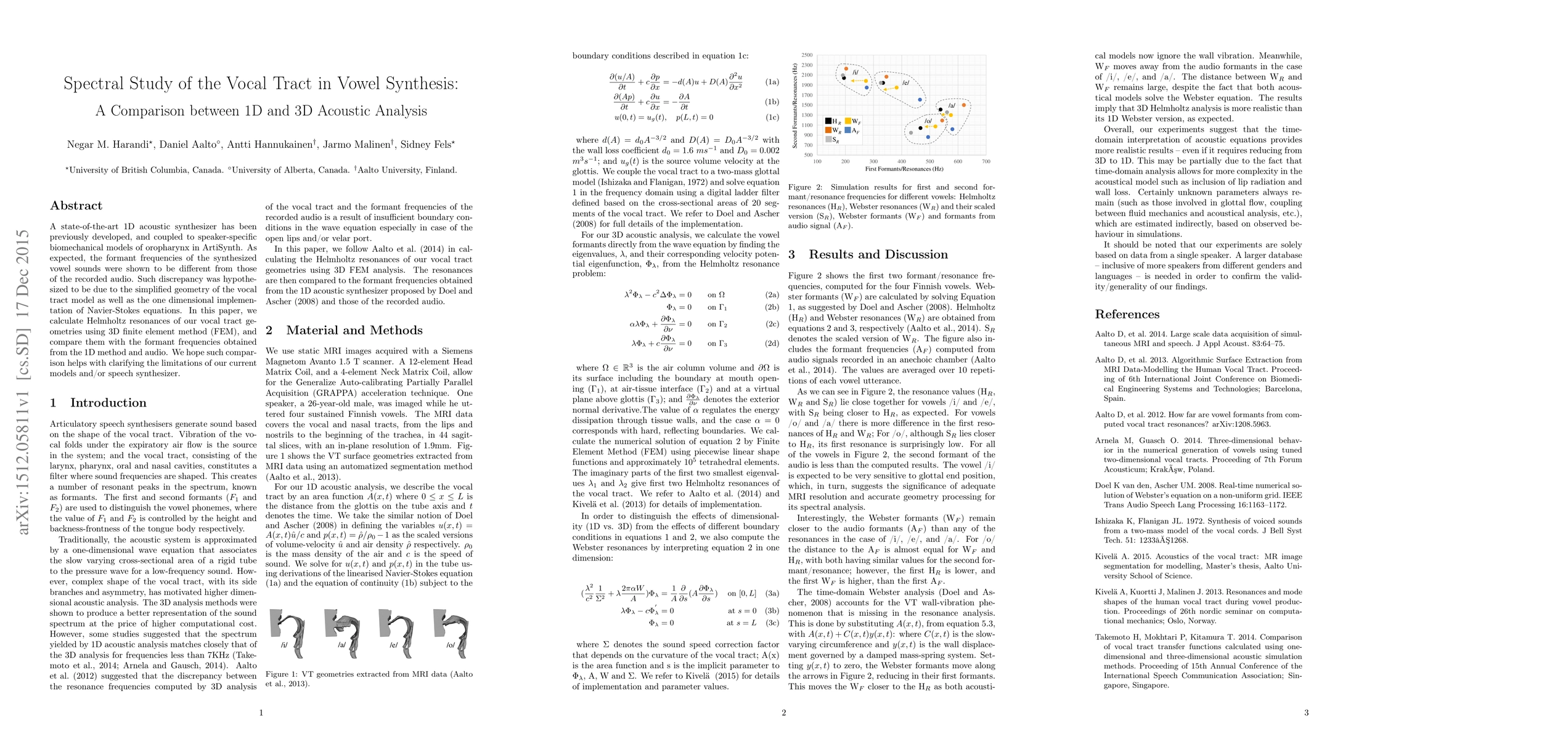 Researchers compared 1D and 3D acoustic analysis methods for vowel synthesis, finding differences in formant frequencies due to model geometry and implementation limitations.