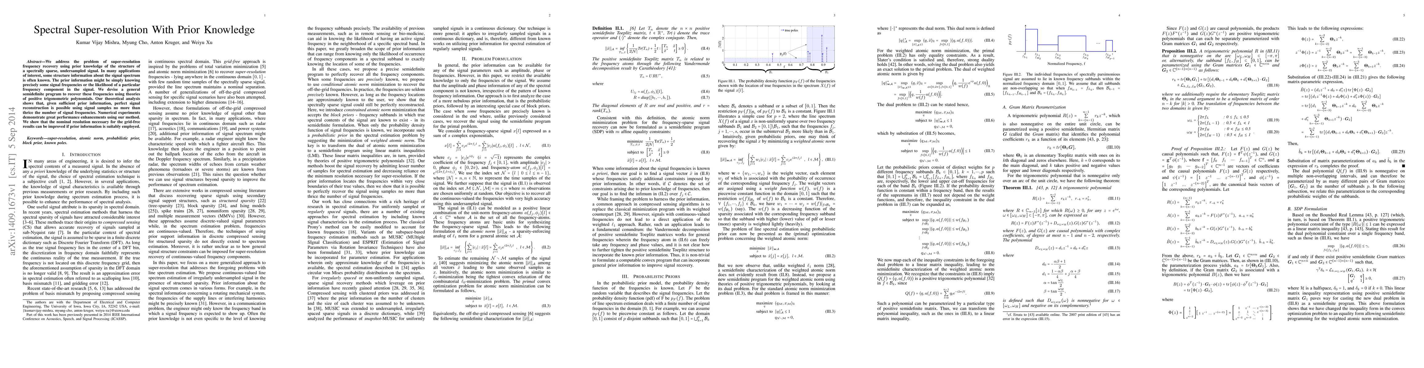 This paper proposes a semidefinite programming approach to achieve spectral super-resolution by leveraging prior knowledge of signal structure. Theoretical analysis and numerical experiments demonstrate that the method can reconstruct signals with fewer samples than traditional methods, especially when prior information is available.