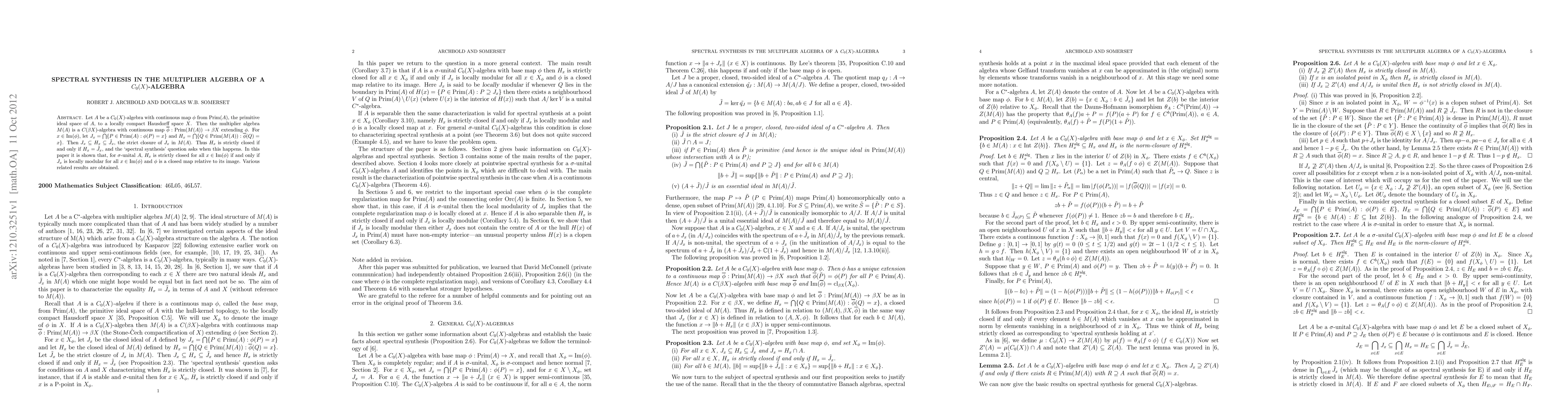 This paper investigates whether the ideal H_x in a C_0(X)-algebra's multiplier algebra M(A) equals its strict closure, which can be seen as a problem of spectral synthesis, with implications for understanding algebraic properties of such algebras.