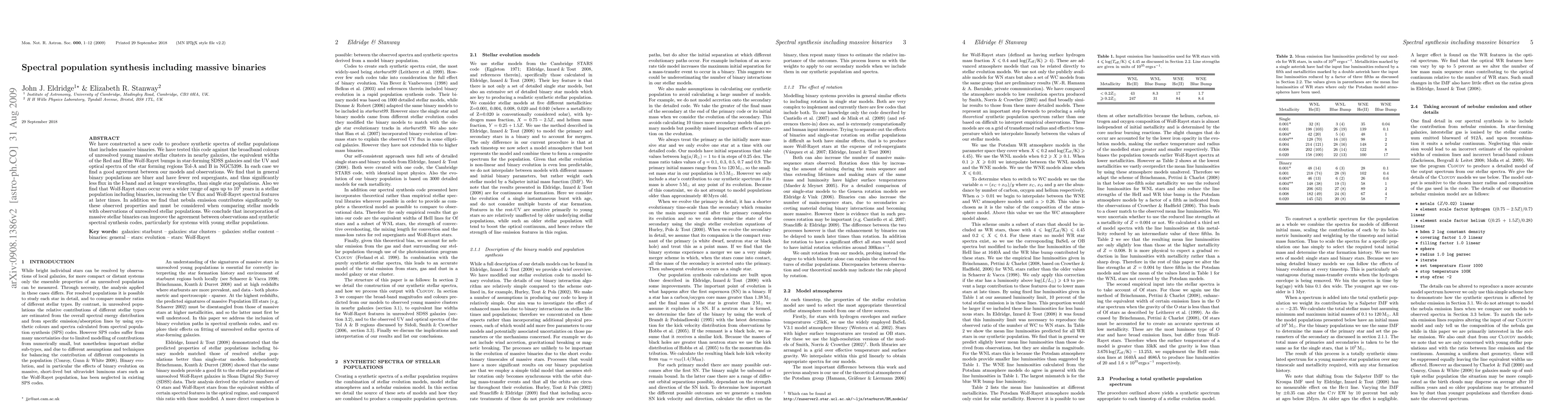 This paper presents a new synthetic spectra code that incorporates massive binaries, showing good agreement with observations of young stellar clusters and star-forming regions. The study finds that binary populations are bluer and have fewer red supergiants, affecting the I-band and longer wavelengths, and that Wolf-Rayet stars appear over a wider age range, enhancing UV flux and spectral features.
