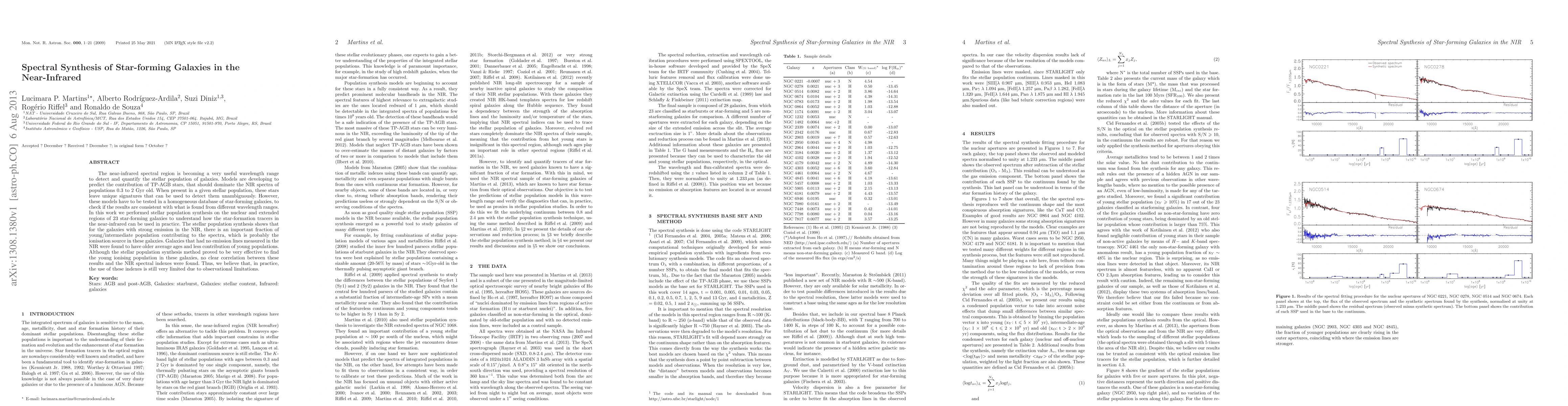The near-infrared spectral region is becoming a very useful wavelength range to detect and quantify the stellar population of galaxies. Models are developing to predict the contribution of TP-AGB stars, that should dominate the NIR spectra of populations 0.3 to 2 Gyr old. When present in a given stellar population, these stars leave unique signatures that can be used to detect them unambiguously. However, these models have to be tested in a homogeneous database of star-forming galaxies, to check if the results are consistent with what is found from different wavelength ranges. In this work we performed stellar population synthesis on the nuclear and extended regions of 23 star-forming galaxies to understand how the star-formation tracers in the near-infrared can be used in practice. The stellar population synthesis shows that for the galaxies with strong emission in the NIR, there is an important fraction of young/intermediate population contributing to the spectra, which is probably the ionisation source in these galaxies. Galaxies that had no emission lines measured in the NIR were found to have older average ages and less contribution of young populations. Although the stellar population synthesis method proved to be very effective to find the young ionising population in these galaxies, no clear correlation between these results and the NIR spectral indexes were found. Thus, we believe that, in practice, the use of these indexes is still very limited due to observational limitations.