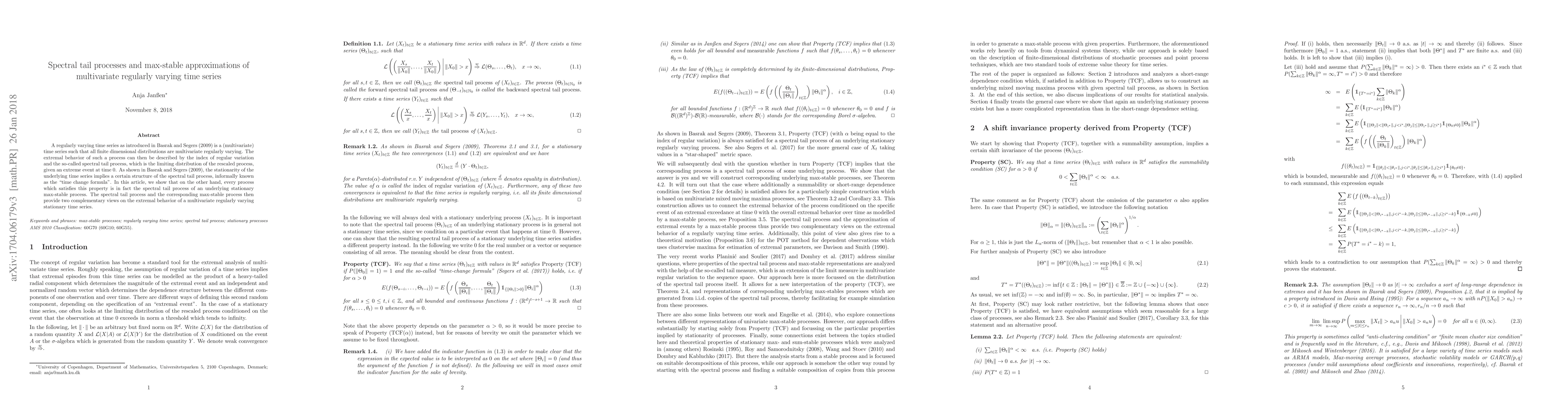 This paper explores the extremal behavior of multivariate regularly varying time series, demonstrating that the spectral tail process, which describes the limiting distribution of rescaled processes after extreme events, is equivalent to the spectral tail process of an underlying stationary max-stable process. This establishes a dual perspective on the extremal behavior of such time series.