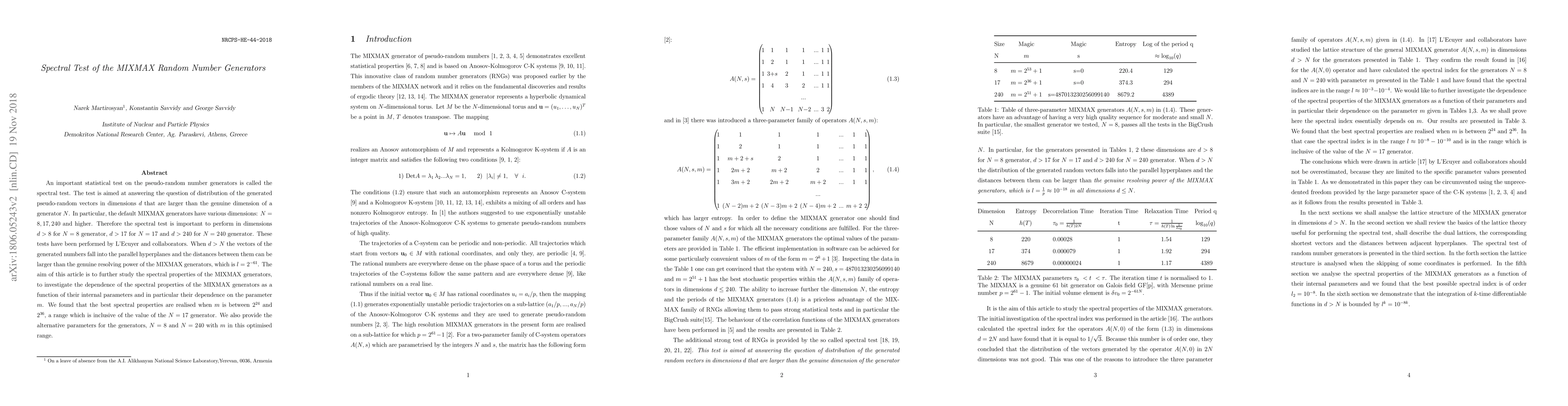 An important statistical test on the pseudo-random number generators is called the spectral test. The test is aimed at answering the question of distribution of the generated pseudo-random vectors in dimensions $d$ that are larger than the genuine dimension of a generator $N$. In particular, the default MIXMAX generators have various dimensions: $N=8,17,240$ and higher. Therefore the spectral test is important to perform in dimensions $d > 8$ for $N=8$ generator, $d> 17$ for $N=17$ and $d> 240$ for $N=240$ generator. These tests have been performed by L'Ecuyer and collaborators. When $d > N$ the vectors of the generated numbers fall into the parallel hyperplanes and the distances between them can be larger than the genuine "resolution" of the MIXMAX generators, which is $ l=2^{-61}$. The aim of this article is to further study the spectral properties of the MIXMAX generators, to investigate the dependence of the spectral properties of the MIXMAX generators as a function of their internal parameters and in particular their dependence on the parameter $m$. We found that the best spectral properties are realized when $m$ is between $2^{24}$ and $2^{36}$, a range which is inclusive of the value of the $N=17$ generator. We also provide the alternative parameters for the generators, $N=8$ and $N=240$ with $m$ in this optimised range.