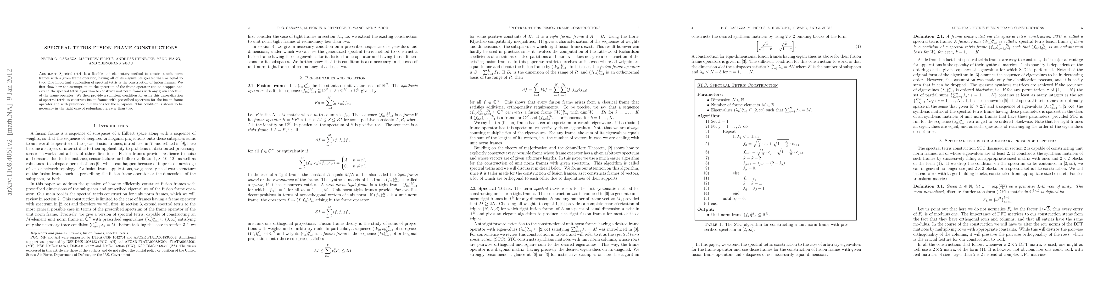 Spectral tetris is a fexible and elementary method to construct unit norm frames with a given frame operator, having all of its eigenvalues greater than or equal to two. One important application of spectral tetris is the construction of fusion frames. We first show how the assumption on the spectrum of the frame operator can be dropped and extend the spectral tetris algorithm to construct unit norm frames with any given spectrum of the frame operator. We then provide a suffcient condition for using this generalization of spectral tetris to construct fusion frames with prescribed spectrum for the fusion frame operator and with prescribed dimensions for the subspaces. This condition is shown to be necessary in the tight case of redundancy greater than two.