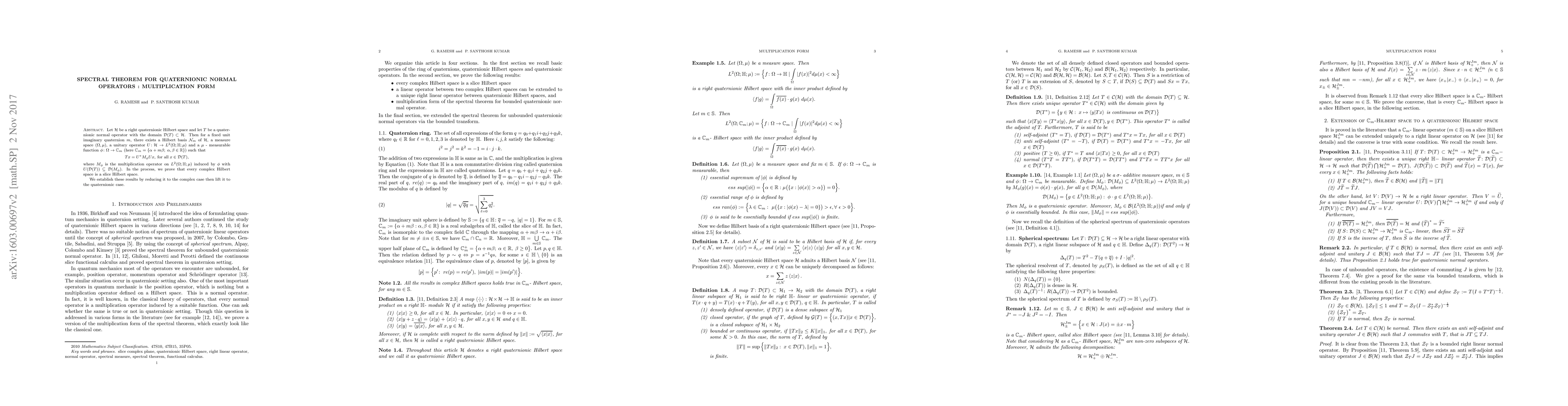 The main technical contribution was the establishment of the spectral theorem for quaternionic normal operators.