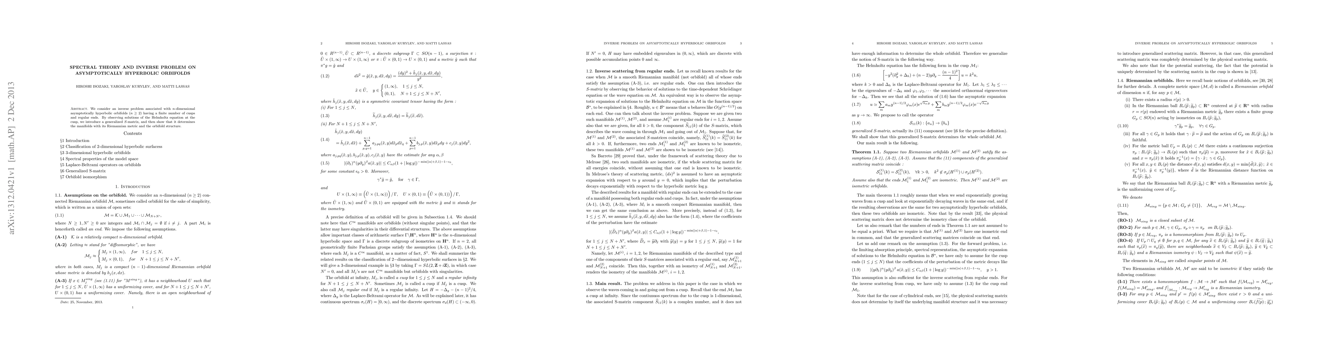 We consider an inverse problem associated with $n$-dimensional asymptotically hyperbolic orbifolds $(n \geq 2)$ having a finite number of cusps and regular ends. By observing solutions of the Helmholtz equation at the cusp, we introduce a generalized $S$-matrix, and then show that it determines the manifolds with its Riemannian metric and the orbifold structure.