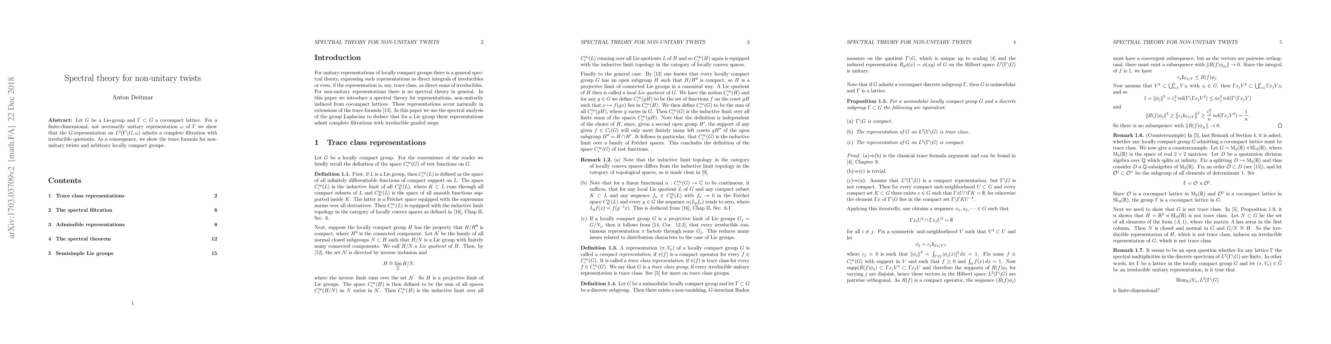 This paper demonstrates that non-unitary representations of a cocompact lattice $\Ga$ in a Lie group $G$ can be completely decomposed into irreducible quotients within the $G$-representation on $L^2(\Ga\bs G,\om)$. It also establishes a trace formula for non-unitary twists applicable to arbitrary locally compact groups.