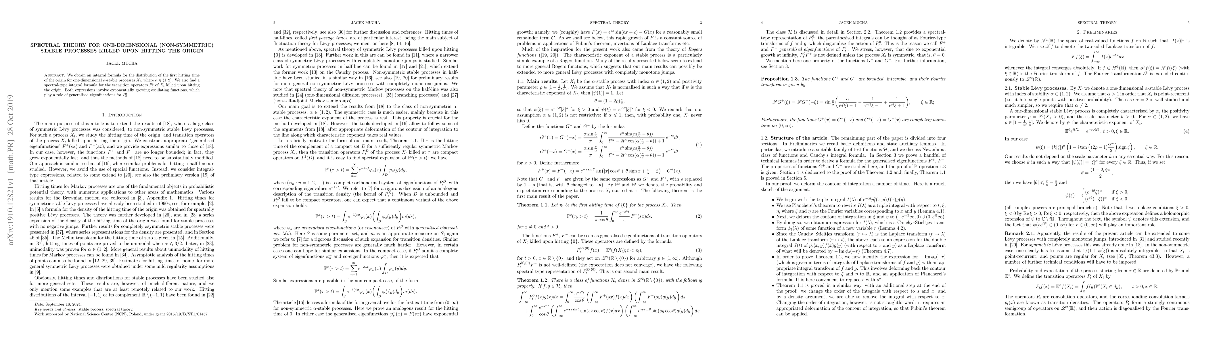 This paper presents integral formulas for the distribution of the first hitting time of the origin for one-dimensional $\alpha$-stable processes and for the transition operators of these processes killed upon hitting the origin, involving exponentially growing oscillating functions as generalized eigenfunctions.