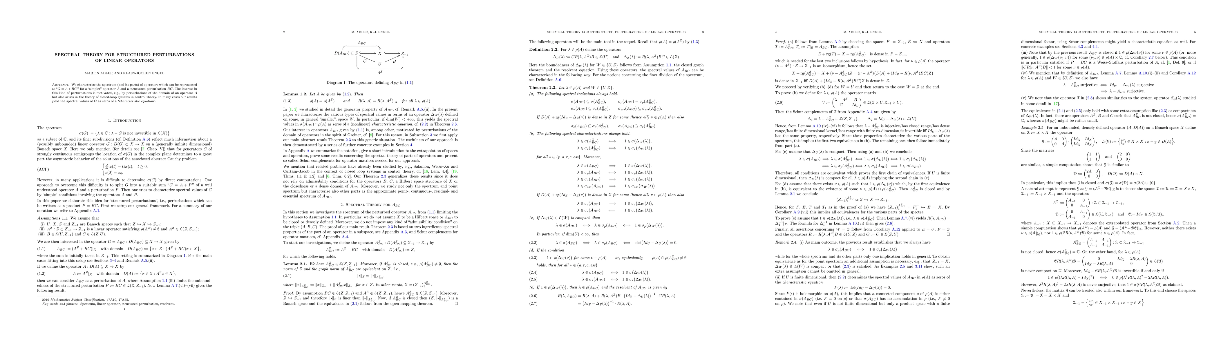 This paper explores the spectral properties of operators structured as G=A+BC, where A is a simpler operator and BC is a structured perturbation. The findings provide insights into the spectral values of G, often expressed as zeros of a characteristic equation, relevant to domain perturbations and control theory systems.