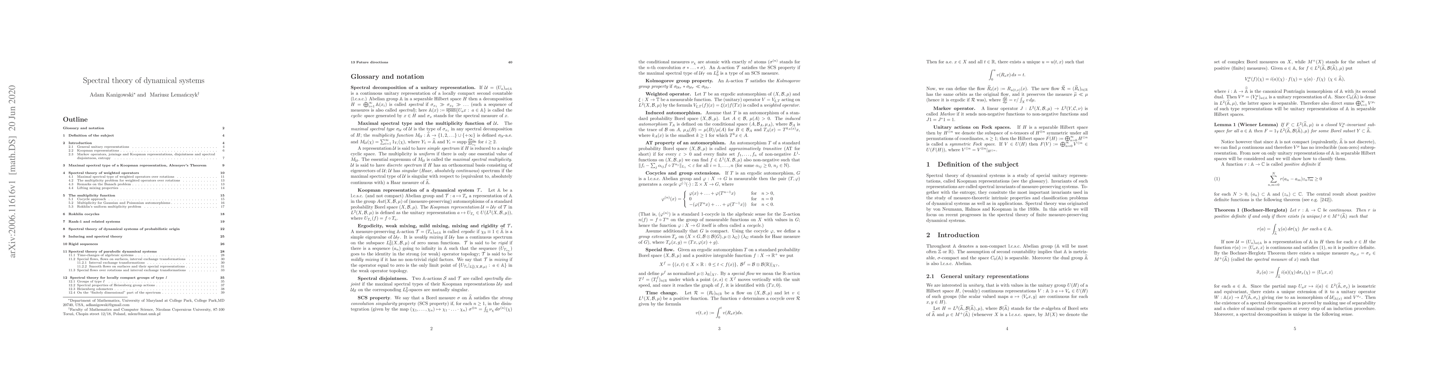 This survey paper offers an in-depth exploration of spectral theory as applied to dynamical systems, summarizing key findings, methodologies, and implications for understanding complex system behaviors across various scientific disciplines.