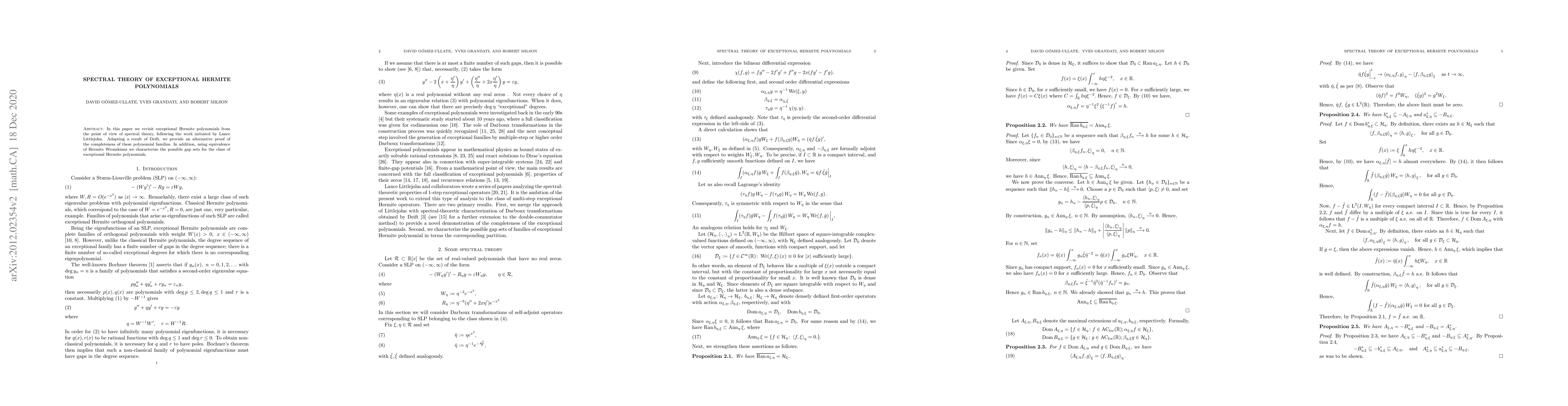 This paper explores the spectral theory of exceptional Hermite polynomials, offering an alternative proof of their completeness and characterizing their possible gap sets using Hermite Wronskians. The work builds on previous results by Lance Littlejohn and Deift.