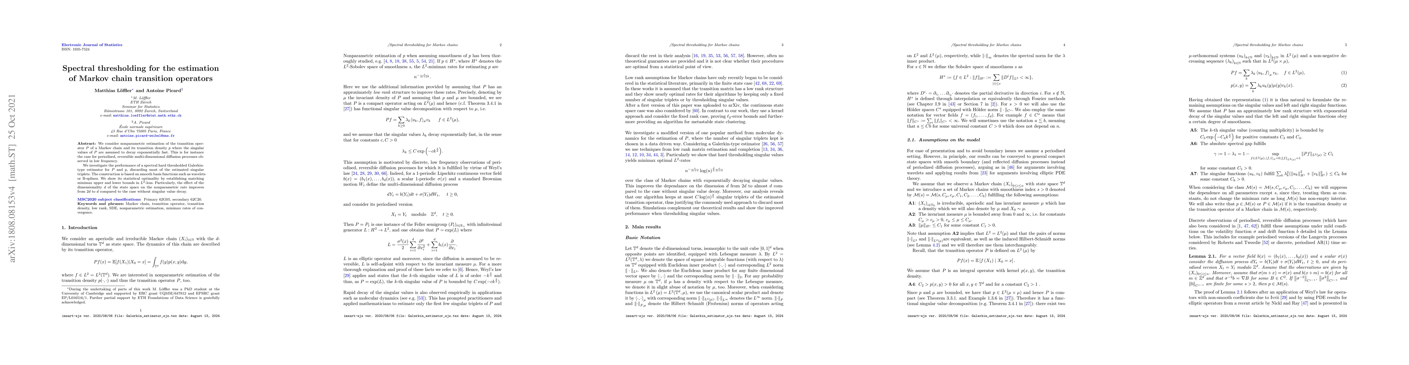 We consider nonparametric estimation of the transition operator $P$ of a Markov chain and its transition density $p$ where the singular values of $P$ are assumed to decay exponentially fast. This is for instance the case for periodised, reversible multi-dimensional diffusion processes observed in low frequency. We investigate the performance of a spectral hard thresholded Galerkin-type estimator for $P$ and ${p}$, discarding most of the estimated singular triplets. The construction is based on smooth basis functions such as wavelets or B-splines. We show its statistical optimality by establishing matching minimax upper and lower bounds in $L^2$-loss. Particularly, the effect of the dimensionality $d$ of the state space on the nonparametric rate improves from $2d$ to $d$ compared to the case without singular value decay.