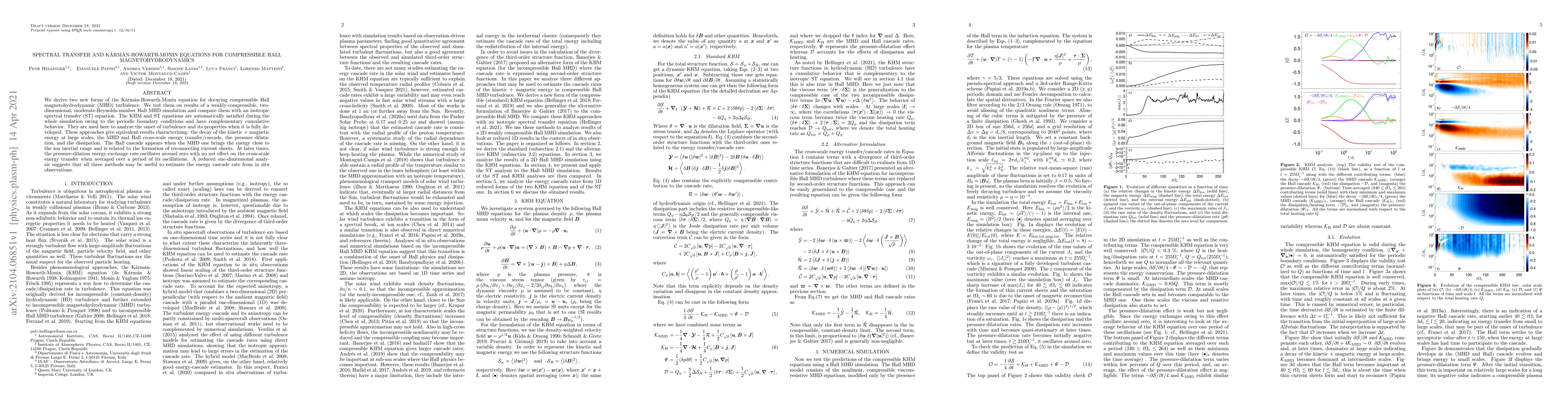 We derive two new forms of the K\'arm\'an-Howarth-Monin equation for decaying compressible Hall magnetohydrodynamic (MHD) turbulence. We test them on results of a weakly-compressible, two-dimensional, moderate-Reynolds-number Hall MHD simulation and compare them with an isotropic spectral transfer (ST) equation. The KHM and ST equations are automatically satisfied during the whole simulation owing to the periodic boundary conditions and have complementary cumulative behavior. They are used here to analyze the onset of turbulence and its properties when it is fully developed. These approaches give equivalent results characterizing: the decay of the kinetic + magnetic energy at large scales, the MHD and Hall cross-scale energy transfer/cascade, the pressure dilatation, and the dissipation. The Hall cascade appears when the MHD one brings the energy close to the ion inertial range and is related to the formation of reconnecting current sheets. At later times, the pressure-dilation energy-exchange rate oscillates around zero with no net effect on the cross-scale energy transfer when averaged over a period of its oscillations. A reduced one-dimensional analysis suggests that all three methods may be useful to estimate the energy cascade rate from in situ observations.