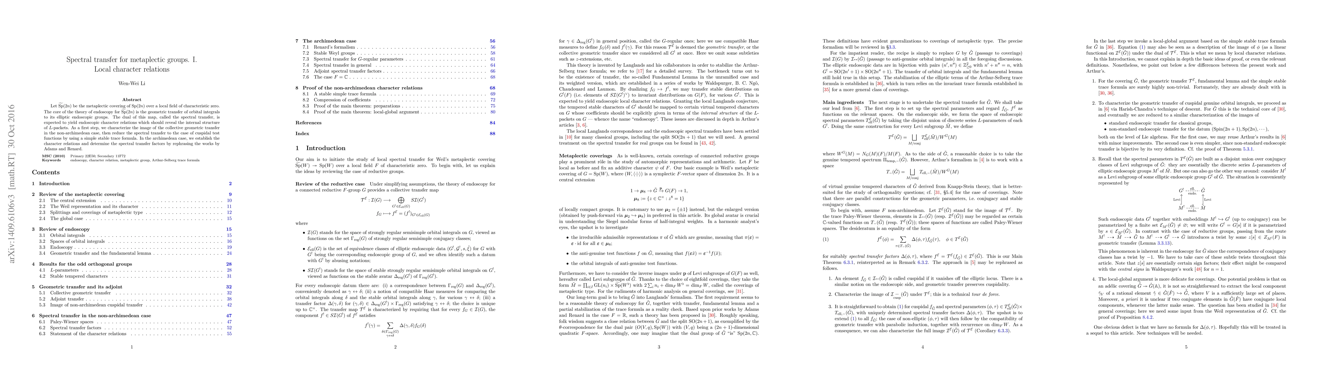Researchers investigate the spectral transfer for metaplectic groups, a concept related to endoscopy in mathematics, aiming to reveal internal structure of L-packets and character relations.