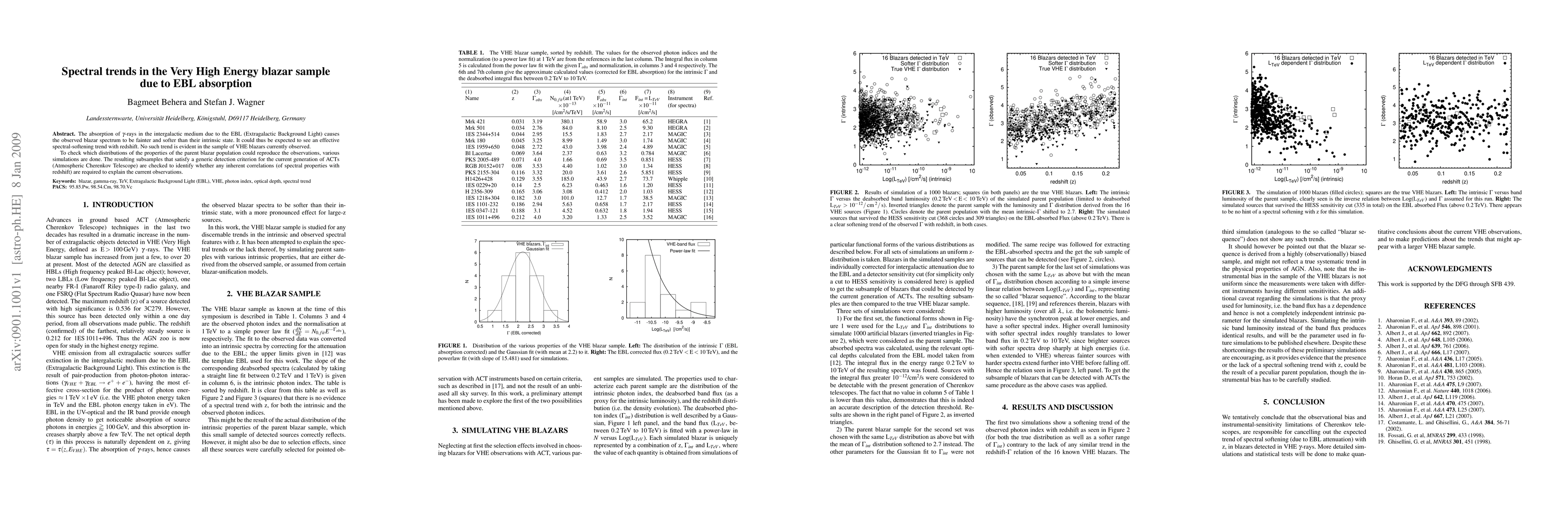 The absorption of gamma-rays in the intergalactic medium due to the EBL (Extragalactic Background Light) causes the observed blazar spectrum to be fainter and softer than their intrinsic state. It could thus be expected to see an effective spectral-softening trend with redshift. No such trend is evident in the sample of VHE blazars currently observed. To check which distributions of the properties of the parent blazar population could reproduce the observations, various simulations are done. The resulting subsamples that satisfy a generic detection criterion for the current generation of ACTs (Atmospheric Cherenkov Telescope) are checked to identify whether any inherent correlations (of spectral properties with redshift) are required to explain the current observations.