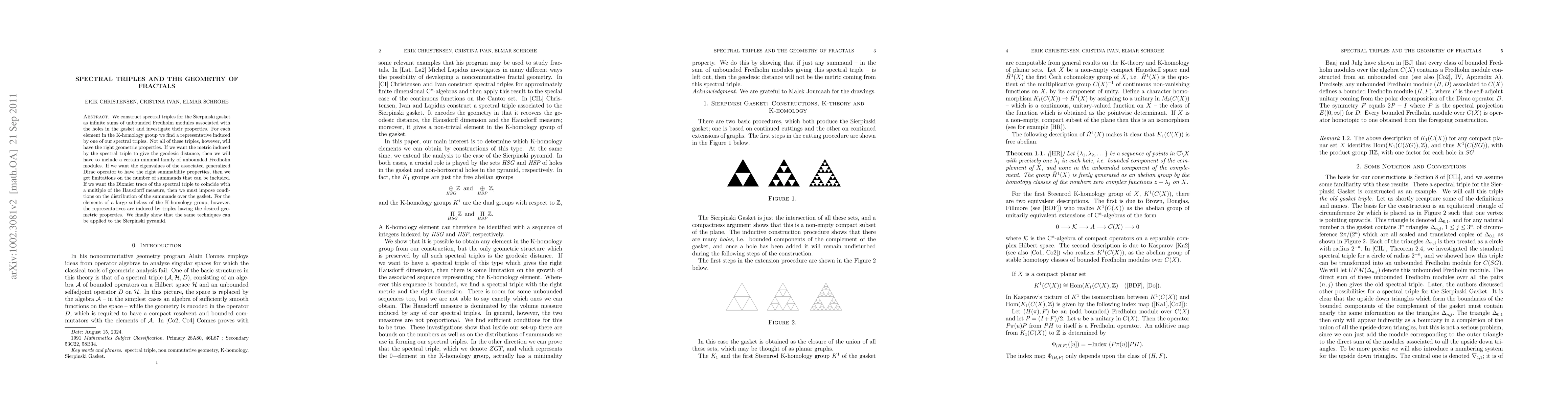 This paper constructs spectral triples for K-homology elements of the Sierpinski gasket, demonstrating that specific limits on these elements are necessary to recover the gasket's geometric properties. It shows that for a significant subgroup of the K-homology group, the spectral triples can recover the metric, dimension, and Hausdorff measure of the gasket.