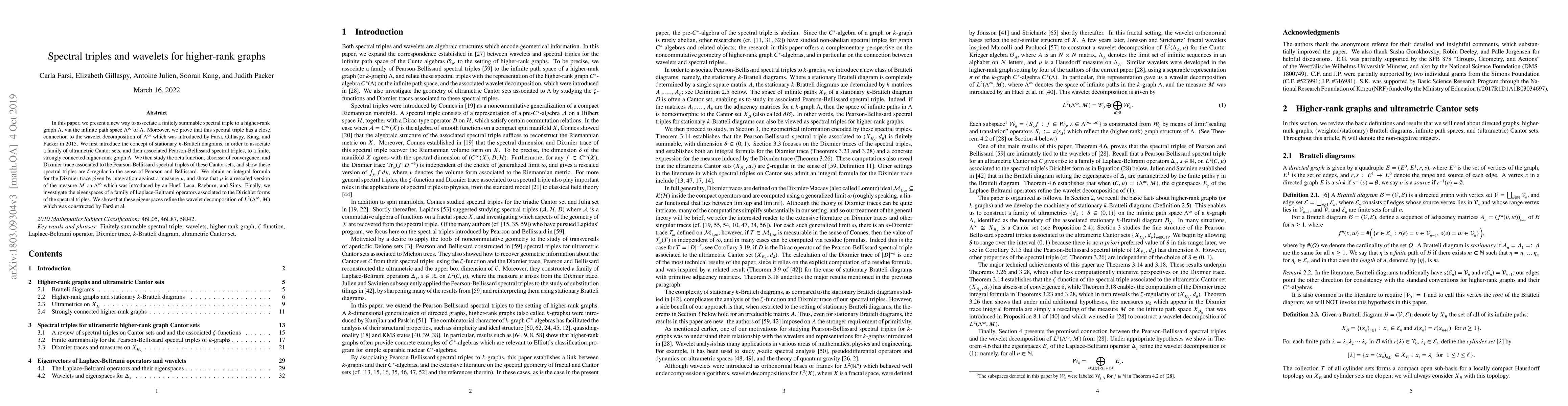This paper associates a spectral triple to higher-rank graphs through the infinite path space, demonstrating a connection to wavelet decompositions introduced in 2015. It also employs stationary k-Bratteli diagrams to link these spectral triples to ultrametric Cantor sets and their properties, ultimately showing that eigenspaces of related Laplace-Beltrami operators refine the wavelet decomposition of the graph's path space.