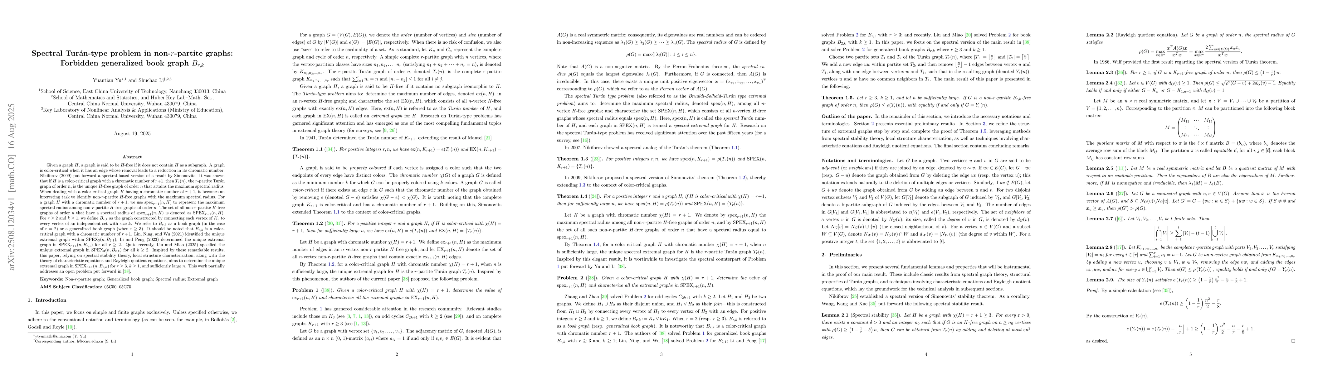 Given a graph $H$, a graph is said to be $H$-free if it does not contain $H$ as a subgraph. A graph is color-critical when it has an edge whose removal leads to a reduction in its chromatic number. For a graph $H$ with a chromatic number of \(r + 1\), we use \(\text{spex}_{r + 1}(n, H)\) to represent the maximum spectral radius among non-$r$-partite $H$-free graphs of order $n$. The set of all non-$r$-partite $H$-free graphs of order $n$ that have a spectral radius of \(\text{spex}_{r + 1}(n, H)\) is denoted as \(\text{SPEX}_{r + 1}(n, H)\). For \(r\geq2\) and \(k\geq1\), we define \(B_{r,k}\) as the graph constructed by connecting each vertex of \(K_r\) to every vertex of an independent set with size $k$. We refer to \(B_{r,k}\) as a book graph (in the case of \(r = 2\)) or a generalized book graph (when \(r\geq3\)). It should be noted that \(B_{r,k}\) is a color-critical graph with a chromatic number of \(r + 1\). Lin, Ning, and Wu (2021) identified the unique extremal graph within \(\text{SPEX}_3(n, B_{2,1})\); Li and Peng (2023) determined the unique extremal graph in \(\text{SPEX}_{r + 1}(n, B_{r,1})\) for all \(r\geq2\). Quite recently, Liu and Miao (2025) specified the unique extremal graph in \(\text{SPEX}_3(n, B_{2,k})\) for all \(k\geq2\). Inspired by these remarkable results, this paper, relying on spectral stability theory, local structure characterization, along with the theory of characteristic equations and Rayleigh quotient equations, aims to determine the unique extremal graph in \(\text{SPEX}_{r + 1}(n, B_{r,k})\) for \(r\geq3\), \(k\geq1\), and sufficiently large $n$. This work partially addresses an open problem put forward in [38].