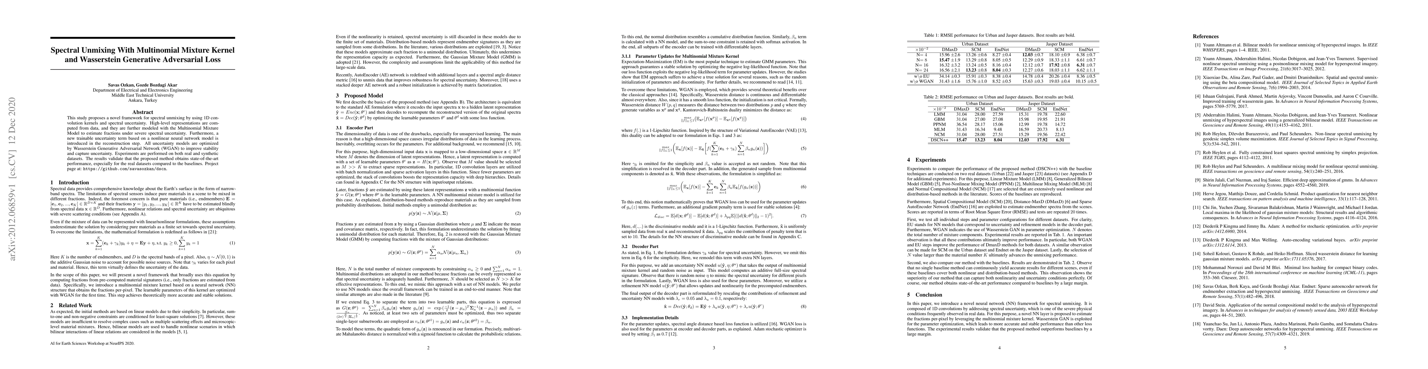 This study proposes a novel framework for spectral unmixing by using 1D convolution kernels and spectral uncertainty. High-level representations are computed from data, and they are further modeled with the Multinomial Mixture Model to estimate fractions under severe spectral uncertainty. Furthermore, a new trainable uncertainty term based on a nonlinear neural network model is introduced in the reconstruction step. All uncertainty models are optimized by Wasserstein Generative Adversarial Network (WGAN) to improve stability and capture uncertainty. Experiments are performed on both real and synthetic datasets. The results validate that the proposed method obtains state-of-the-art performance, especially for the real datasets compared to the baselines. Project page at: https://github.com/savasozkan/dscn.