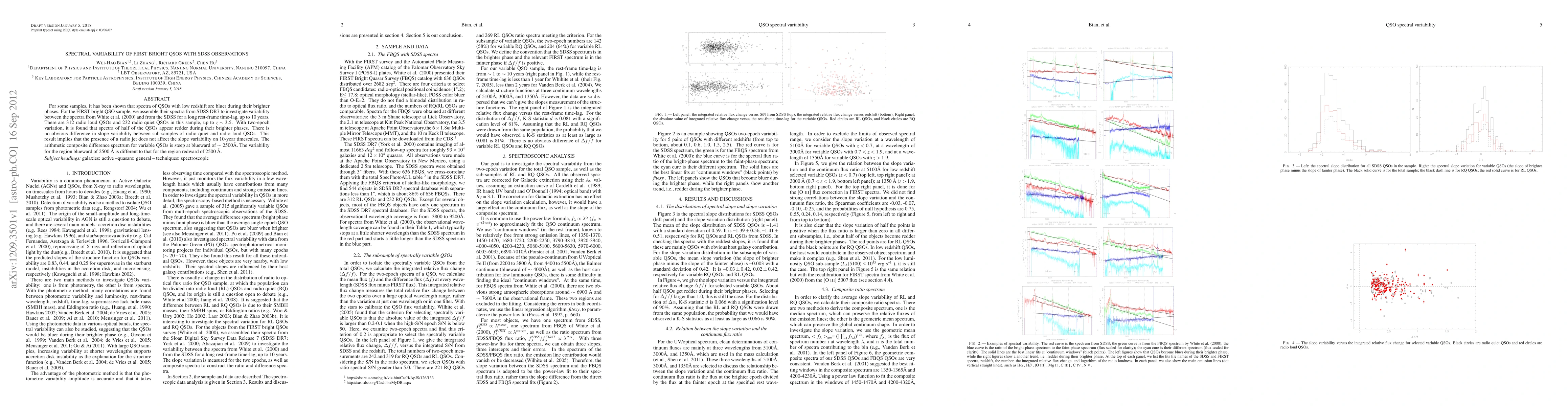 This study investigates spectral variability in a sample of FIRST bright QSOs using SDSS DR7 data, comparing spectra from White et al. (2000) and SDSS over a 10-year period. The findings show that half of the QSOs exhibit redder spectra during brighter phases, with no significant difference between radio quiet and radio loud QSOs, suggesting radio jets do not influence this variability.