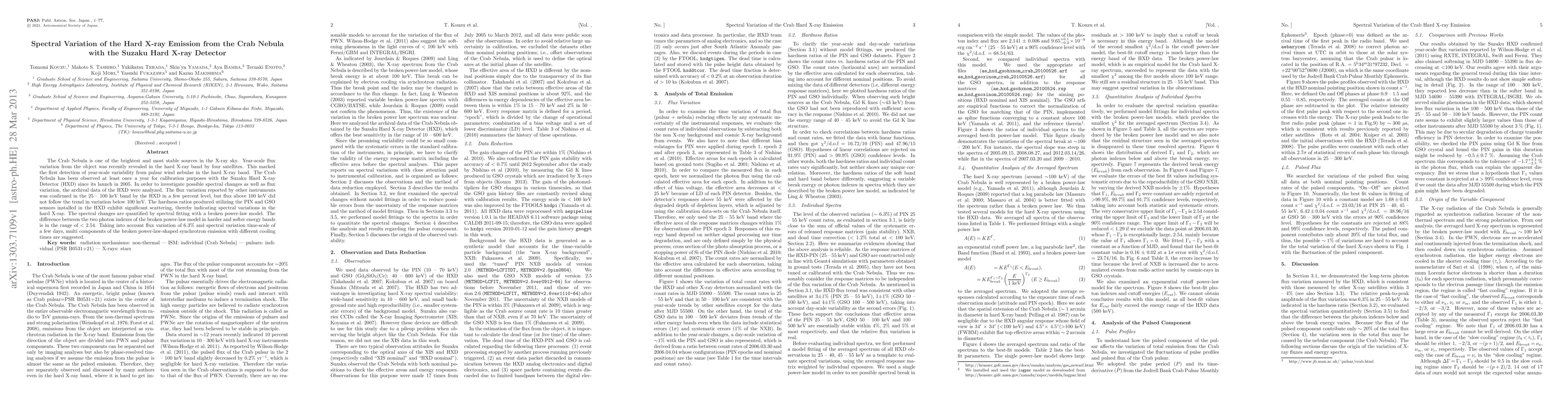 This paper investigates the spectral variation of the Crab Nebula's hard X-ray emission using Suzaku's Hard X-ray Detector (HXD). It confirms flux variation in the 25-100 keV band and identifies significant spectral changes above 100 keV, suggesting multi-component synchrotron emission with different cooling times.