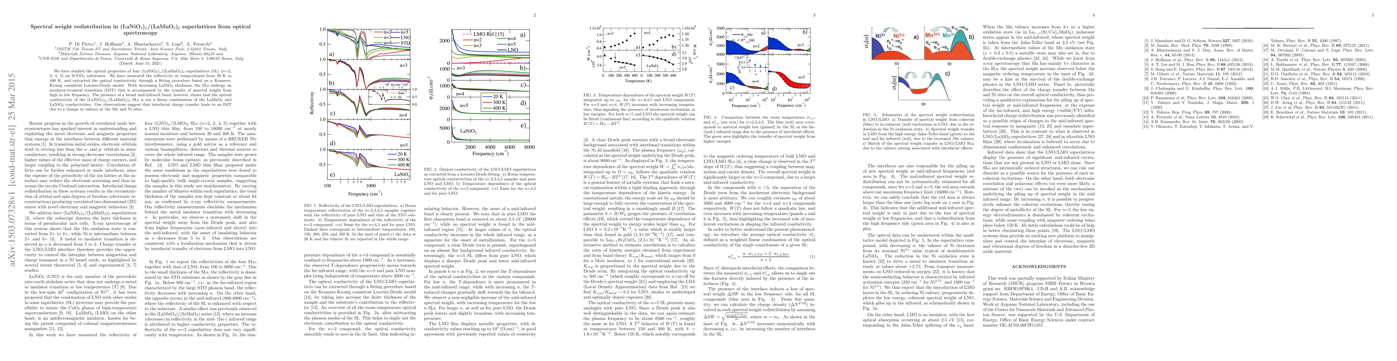 This study investigates the optical properties of (LaNiO$_3$)$_n$/(LaMnO$_3$)$_2$ superlattices, revealing an insulator-to-metal transition with spectral weight redistribution from high to low frequency. The observed mid-infrared band indicates that the optical conductivity is influenced by interfacial charge transfer, suggesting a change in valence at Mn and Ni sites.