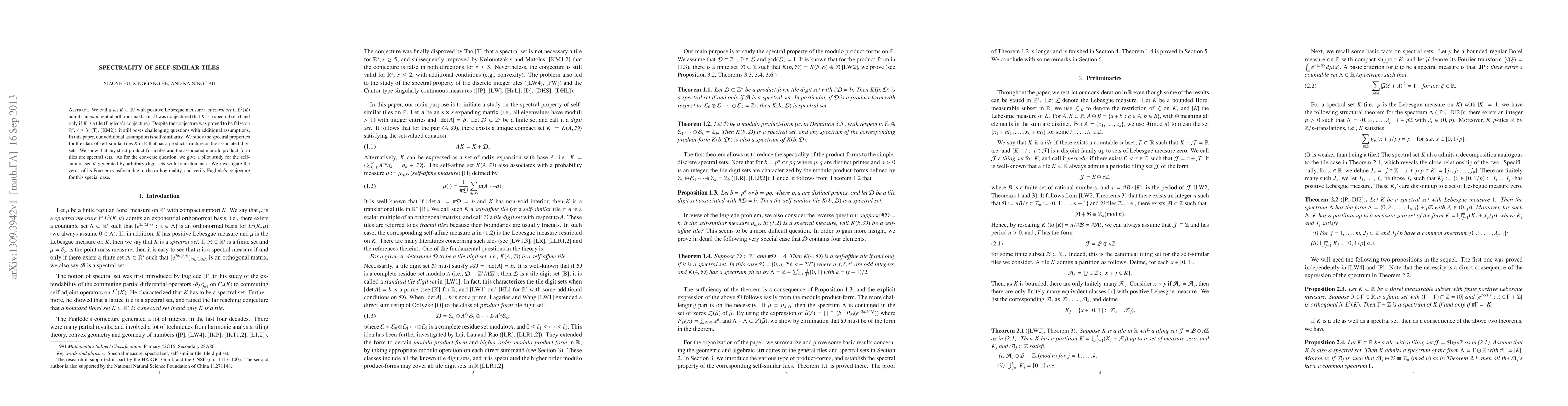 We call a set $K \subset {\mathbb R}^s$ with positive Lebesgue measure a {\it spectral set} if $L^2(K)$ admits an exponential orthonormal basis. It was conjectured that $K$ is a spectral set if and only if $K$ is a tile (Fuglede's conjecture). Despite the conjecture was proved to be false on ${\mathbb R}^s$, $s\geq 3$ ([T], [KM2]), it still poses challenging questions with additional assumptions. In this paper, our additional assumption is self-similarity. We study the spectral properties for the class of self-similar tiles $K$ in ${\mathbb R}$ that has a product structure on the associated digit sets. We show that any strict product-form tiles and the associated modulo product-form tiles are spectral sets. As for the converse question, we give a pilot study for the self-similar set $K$ generated by arbitrary digit sets with four elements. We investigate the zeros of its Fourier transform due to the orthogonality, and verify Fuglede's conjecture for this special case.