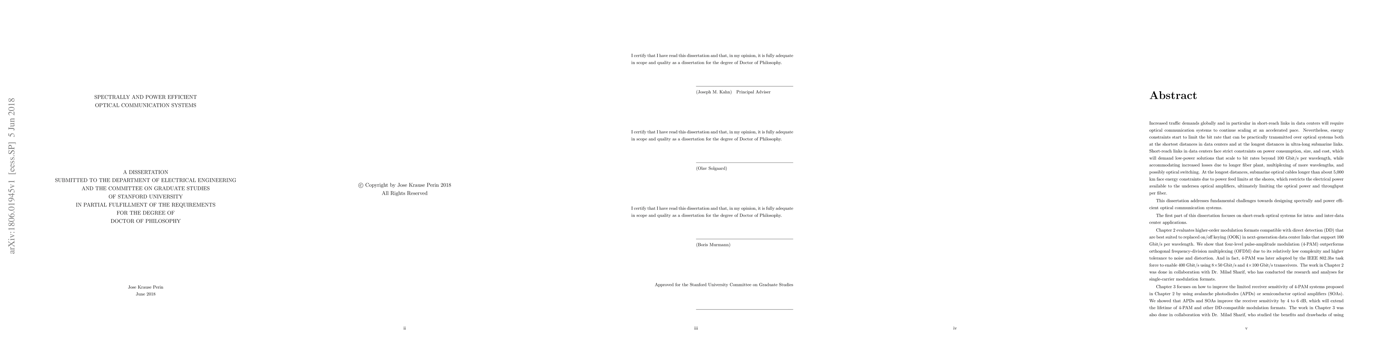 This paper explores strategies for enhancing the spectral and power efficiency of optical communication systems, focusing on low-power solutions for data center short-reach links and optimizing power allocation for long-haul submarine links to maximize throughput despite energy constraints.