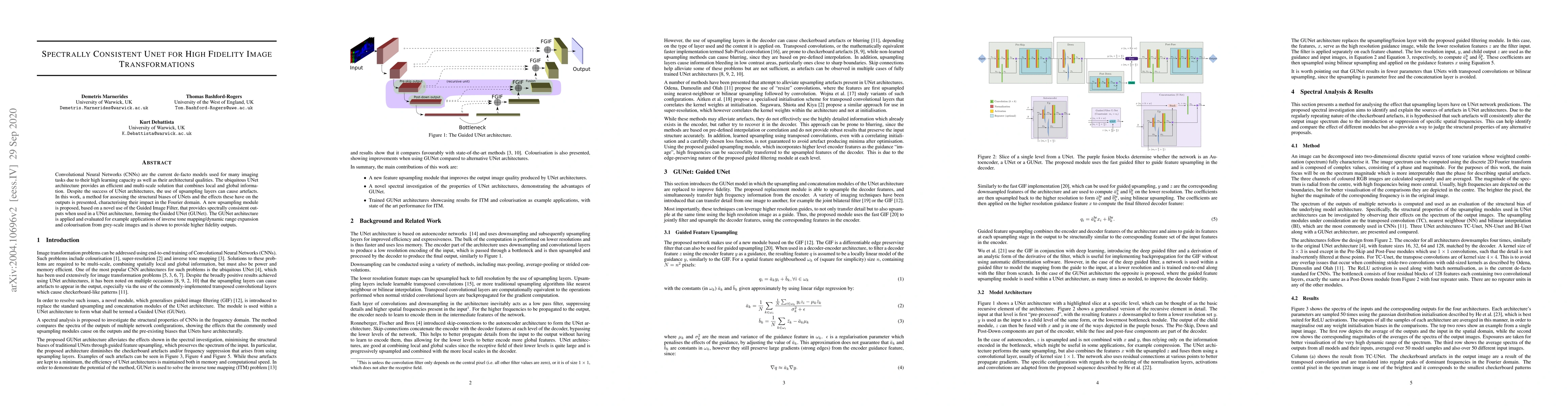 Convolutional Neural Networks (CNNs) are the current de-facto models used for many imaging tasks due to their high learning capacity as well as their architectural qualities. The ubiquitous UNet architecture provides an efficient and multi-scale solution that combines local and global information. Despite the success of UNet architectures, the use of upsampling layers can cause artefacts. In this work, a method for assessing the structural biases of UNets and the effects these have on the outputs is presented, characterising their impact in the Fourier domain. A new upsampling module is proposed, based on a novel use of the Guided Image Filter, that provides spectrally consistent outputs when used in a UNet architecture, forming the Guided UNet (GUNet). The GUNet architecture is applied and evaluated for example applications of inverse tone mapping/dynamic range expansion and colourisation from grey-scale images and is shown to provide higher fidelity outputs.