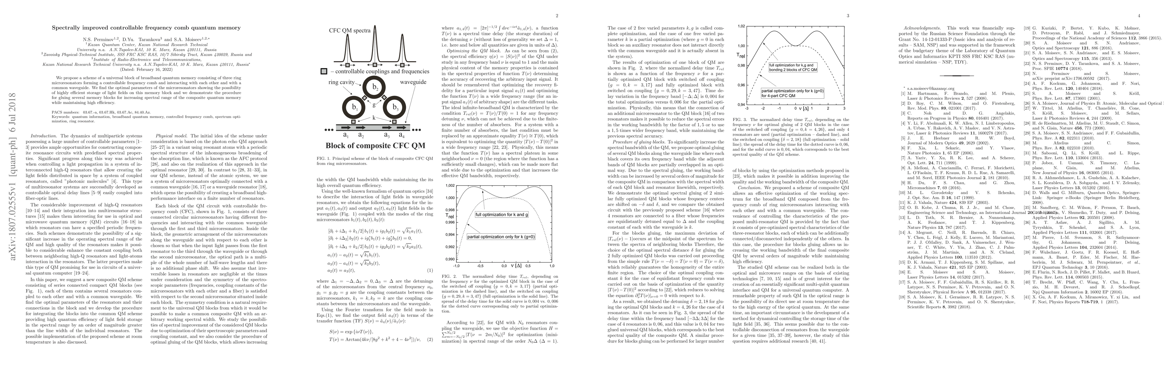 This paper proposes a broadband quantum memory system using three ring microresonators to form a controllable frequency comb, achieving highly efficient light storage. The authors also detail a method to combine multiple memory blocks to extend the spectral range while preserving efficiency.