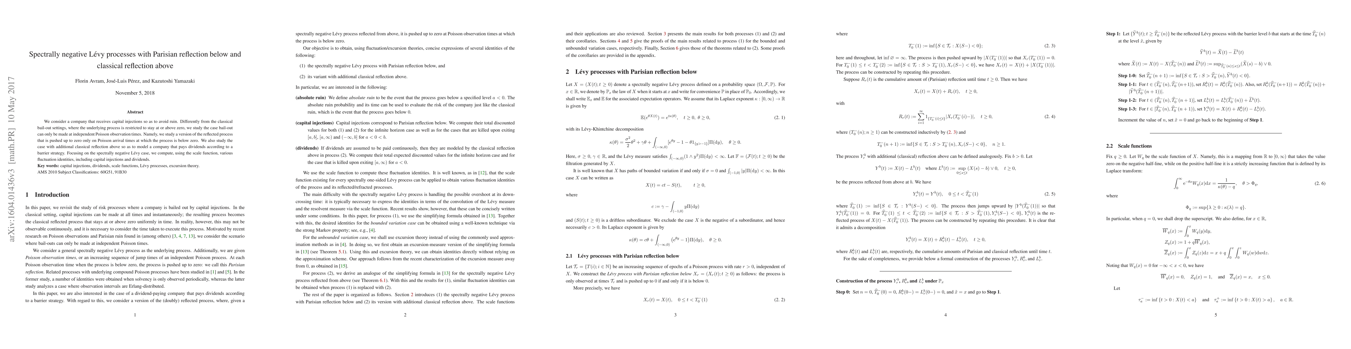 We consider a company that receives capital injections so as to avoid ruin. Differently from the classical bail-out settings where the underlying process is restricted to stay at or above zero, we study the case bail-out can only be made at independent Poisson times. Namely, we study a version of the reflected process that is pushed up to zero only on Poisson observation times at which the process is below zero. We also study the case with additional classical reflection above so as to model a company that pays dividends according to a barrier strategy. Focusing on the spectrally negative L\'evy case, we compute, using the scale function, various fluctuation identities including capital injections and dividends.