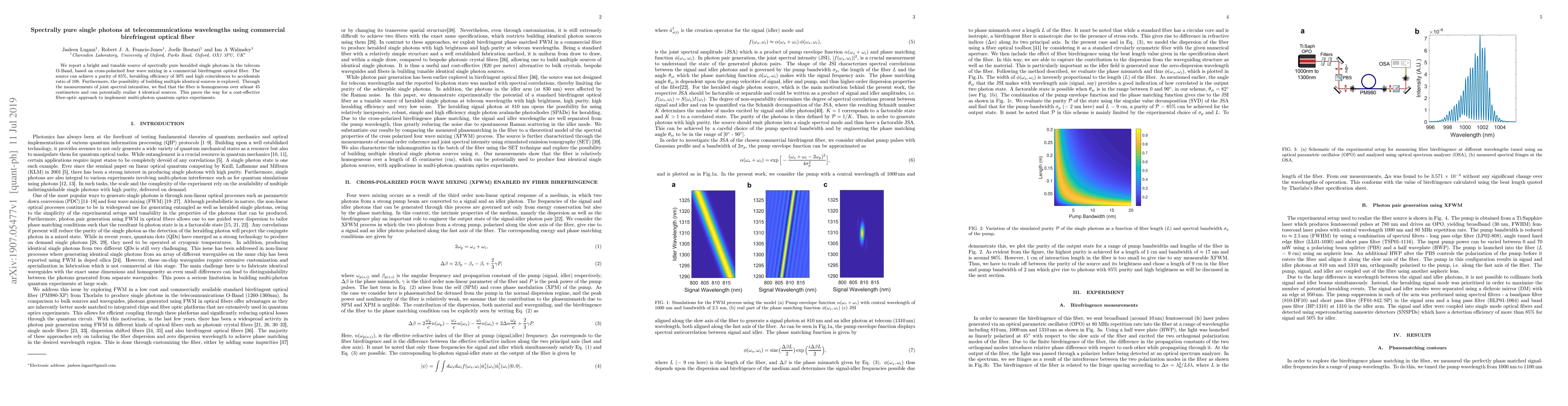 This paper presents a bright and tunable source of spectrally pure single photons in the telecom O-Band using cross-polarized four wave mixing in a commercial birefringent optical fiber, achieving 85% purity and a 30% heralding efficiency. The study also explores the potential for creating multiple identical sources, indicating the fiber's homogeneity over 45 cm.