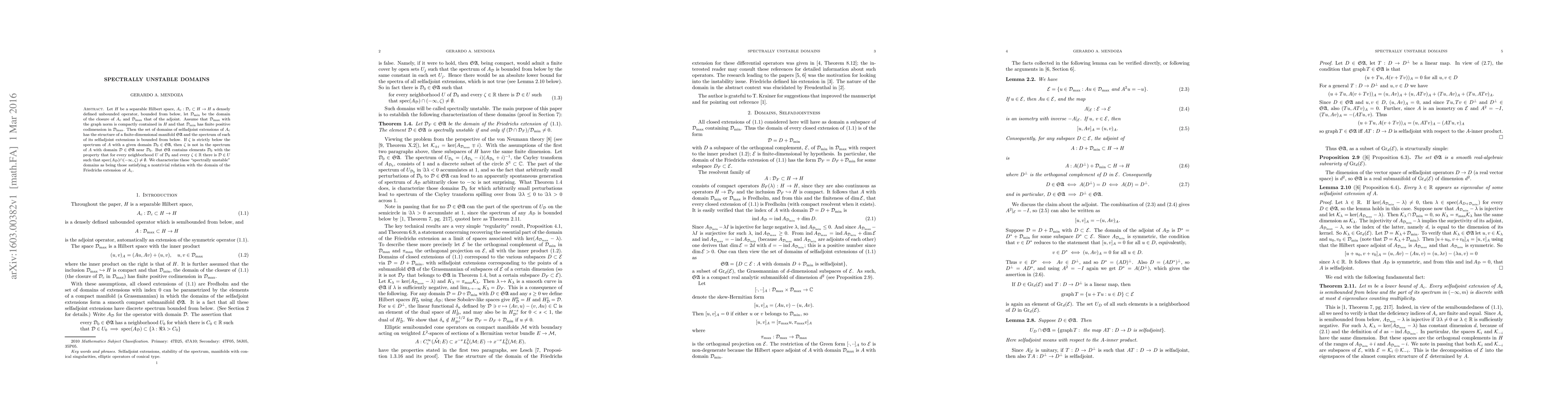 A study on selfadjoint extensions of a densely defined unbounded operator reveals that certain domains exhibit spectral instability, meaning their spectrum can contain arbitrarily low frequencies, while others remain bounded from below.