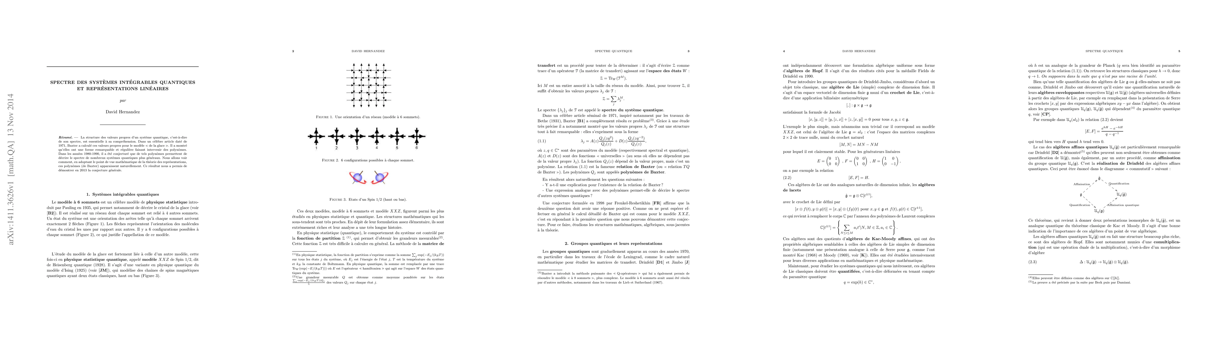 We review arXiv:1308.3444 and arXiv:1104.1891. The structure of the spectrum of a quantum integrable system is crucial to understand its properties. In his seminar 1971 paper, Baxter observed that the spectrum of the "ice model" has a very remarkable form involving polynomials. Then it was conjectured that analog polynomials can be used to describe the spectra of more general quantum integrable systems (arXiv:math/9810055). We discuss how these (generalized Baxter's) polynomials arise naturally in terms of representation theory. This result lead recently to the proof of the conjecture.
