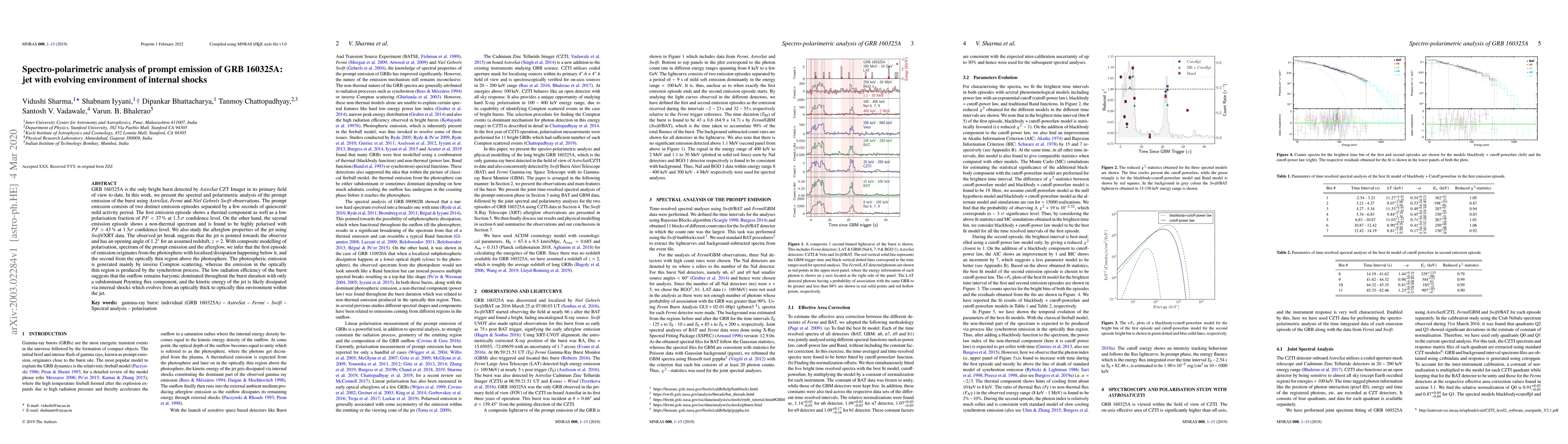 Scientists analyzed the prompt emission of GRB 160325A using multiple space telescopes and found two distinct episodes with different spectra and polarization properties, suggesting a jet with evolving environment of internal shocks.
