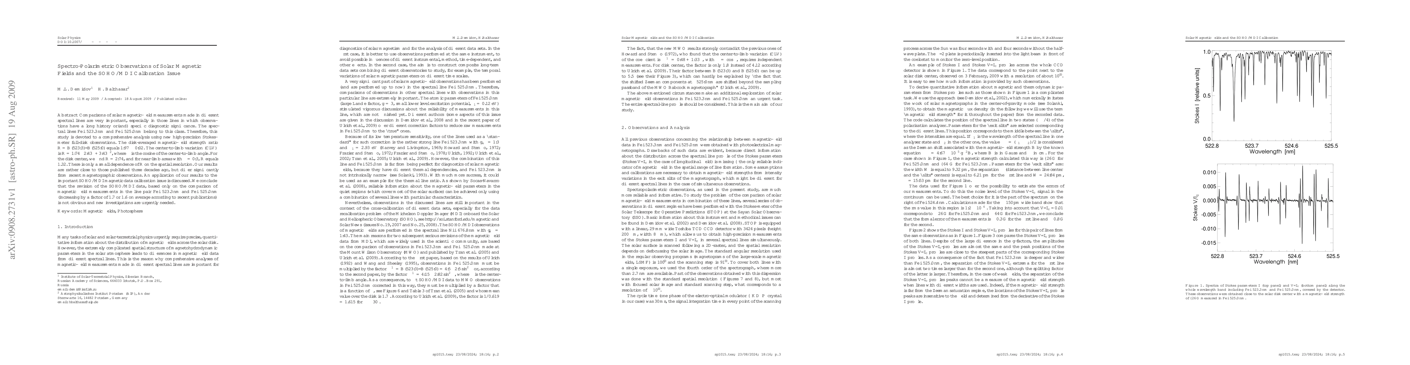 This study analyzes solar magnetic fields using high-precision observations of spectral lines FeI 523.3 nm and FeI 525.0 nm, finding a disk-averaged magnetic-field strength ratio of 1.97 ± 0.02. It concludes that recent revisions to SOHO/MDI data calibration based on these lines are unwarranted and calls for further investigation.