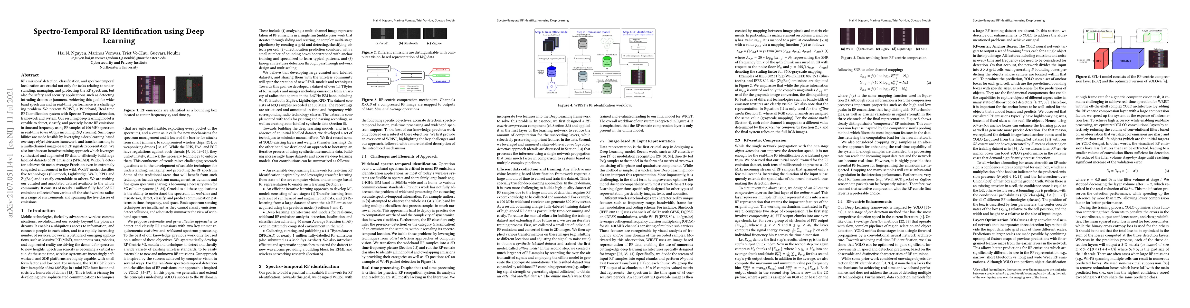 The paper presents WRIST, a deep learning-based system for real-time detection, classification, and spectro-temporal localization of RF emissions across a 100 MHz spectrum. The model achieves high accuracy even in congested environments and can classify five wireless technologies, with plans for expansion.