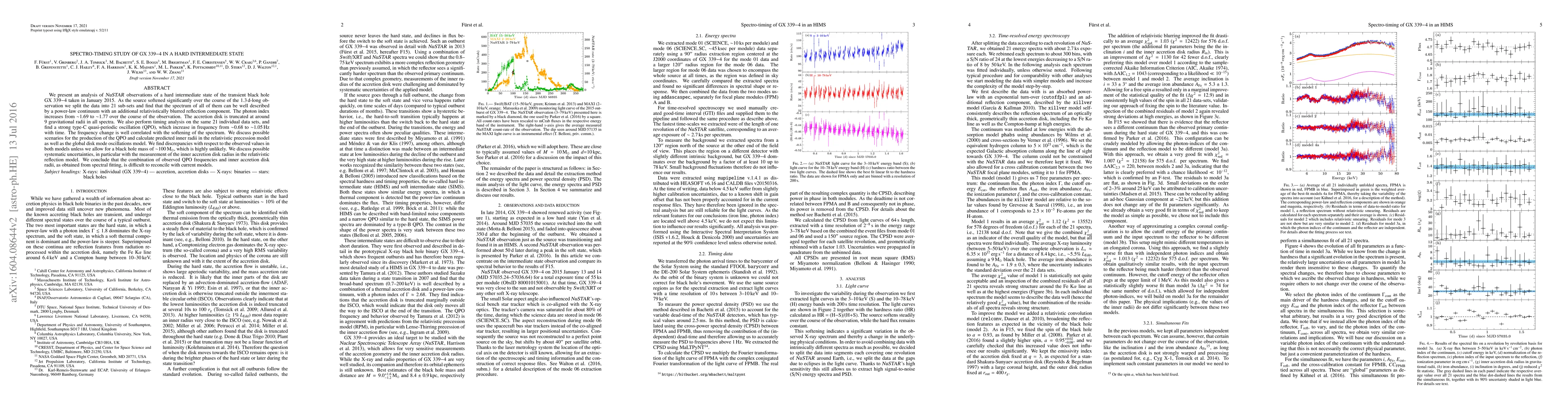 We present an analysis of NuSTAR observations of a hard intermediate state of the transient black hole GX 339-4 taken in January 2015. As the source softened significantly over the course of the 1.3 d-long observation we split the data into 21 sub-sets and find that the spectrum of all of them can be well described by a power-law continuum with an additional relativistically blurred reflection component. The photon index increases from ~1.69 to ~1.77 over the course of the observation. The accretion disk is truncated at around 9 gravitational radii in all spectra. We also perform timing analysis on the same 21 individual data sets, and find a strong type-C quasi-periodic oscillation (QPO), which increase in frequency from ~0.68 to ~1.05 Hz with time. The frequency change is well correlated with the softening of the spectrum. We discuss possible scenarios for the production of the QPO and calculate predicted inner radii in the relativistic precession model as well as the global disk mode oscillations model. We find discrepancies with respect to the observed values in both models unless we allow for a black hole mass of ~100 M_sun , which is highly unlikely. We discuss possible systematic uncertainties, in particular with the measurement of the inner accretion disk radius in the relativistic reflection model. We conclude that the combination of observed QPO frequencies and inner accretion disk radii, as obtained from spectral fitting, is difficult to reconcile with current models.