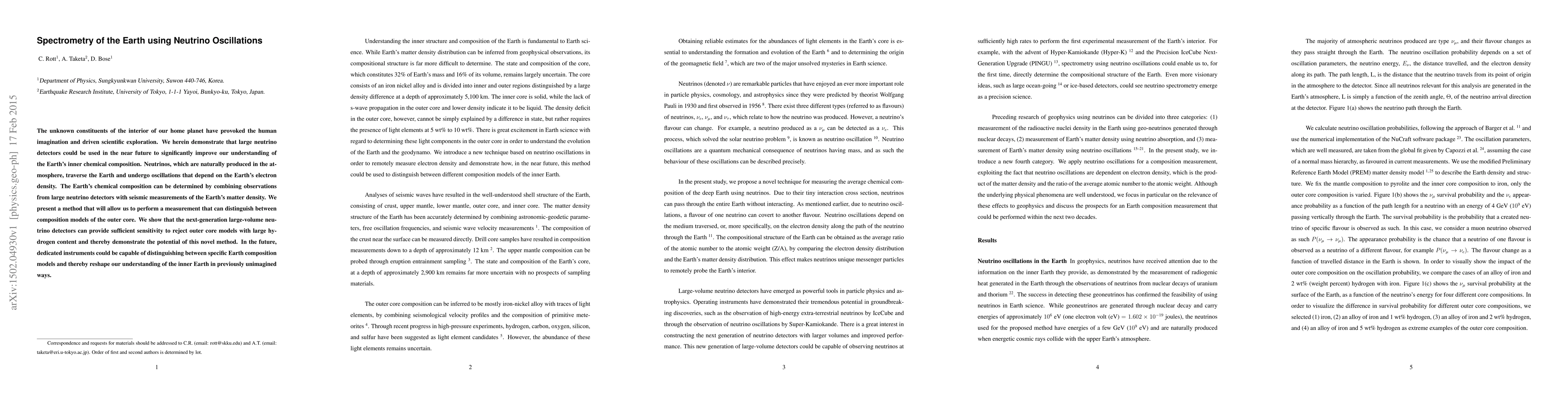 This paper proposes a method using large neutrino detectors to analyze Earth's inner chemical composition by measuring neutrino oscillations influenced by the planet's electron density. It suggests that next-generation detectors can distinguish between models of the Earth's outer core, potentially reshaping our understanding of the planet's interior.