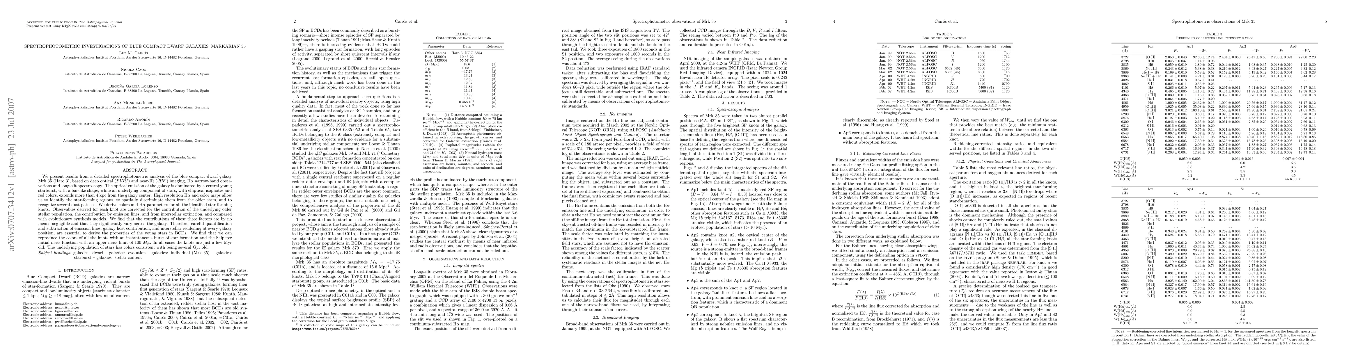 We present results from a detailed spectrophotometric analysis of the blue compact dwarf galaxy Mrk 35 (Haro 3), based on deep optical (B,V,R,I) and near-IR (J,H,K) imaging, Halpha narrow-band observations and long-slit spectroscopy. The optical emission of the galaxy is dominated by a central young starburst, with a bar-like shape, while an underlying component of stars, with elliptical isophotes and red colors, extends more than 4 kpc from the galaxy center. High resolution Halpha and color maps allow us to identify the star-forming regions, to spatially discriminate them from the older stars, and to recognize several dust patches. We derive colors and Halpha parameters for all the identified star-forming knots. Observables derived for each knot are corrected for the contribution of the underlying older stellar population, the contribution by emission lines, and from interstellar extinction, and compared with evolutionary synthesis models. We find that the contributions of these three factors are by no means negligible and that they significantly vary across the galaxy. Therefore, careful quantification and subtraction of emission lines, galaxy host contribution, and interstellar reddening at every galaxy position, are essential to derive the properties of the young stars in BCDs. We find that we can reproduce the colors of all the knots with an instantaneous burst of star formation and the Salpeter initial mass function with an upper mass limit of 100 M_solar. In all cases the knots are just a few Myr old. The underlying population of stars has colors consistent with being several Gyr old.