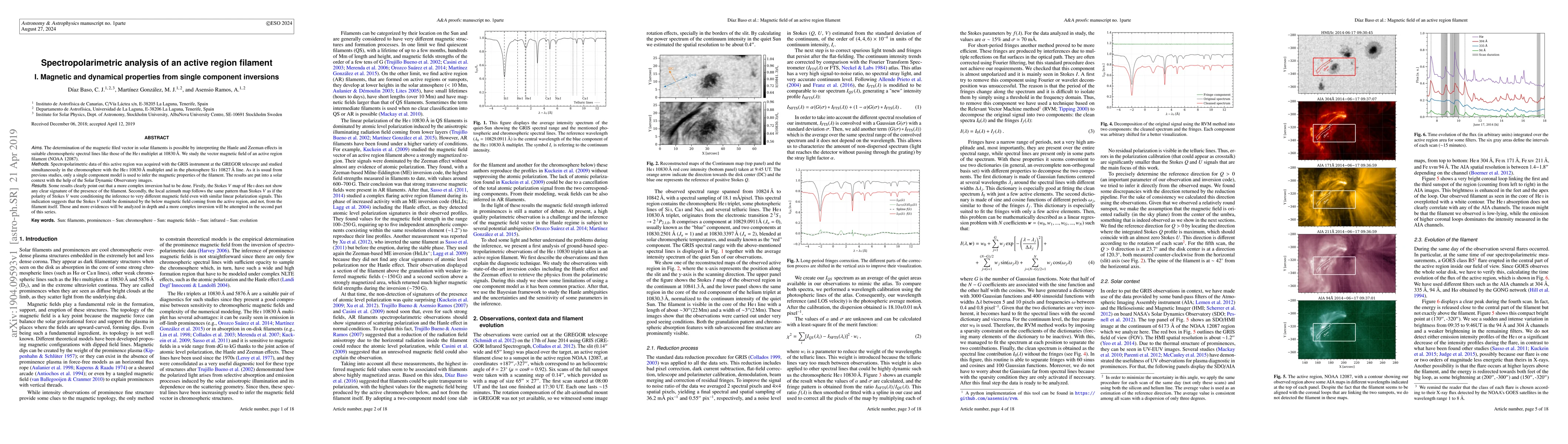 The determination of the magnetic filed vector in solar filaments is possible by interpreting the Hanle and Zeeman effects in suitable chromospheric spectral lines like those of the He I multiplet at 10830 A. We study the vector magnetic field of an active region filament (NOAA 12087). Spectropolarimetric data of this active region was acquired with the GRIS instrument at the GREGOR telescope and studied simultaneously in the chromosphere with the He I 10830 A multiplet and in the photosphere with the Si I 10827 A line. As it is usual from previous studies, only a single component model is used to infer the magnetic properties of the filament. The results are put into a solar context with the help of the Solar Dynamic Observatory images. Some results clearly point out that a more complex inversion had to be done. Firstly, the Stokes $V$ map of He I does not show any clear signature of the presence of the filament. Secondly, the local azimuth map follows the same pattern than Stokes $V$ as if the polarity of Stokes $V$ were conditioning the inference to very different magnetic field even with similar linear polarization signals. This indication suggests that the Stokes $V$ could be dominated by the below magnetic field coming from the active region, and not, from the filament itself. Those and more evidences will be analyzed in depth and a more complex inversion will be attempted in the second part of this series.